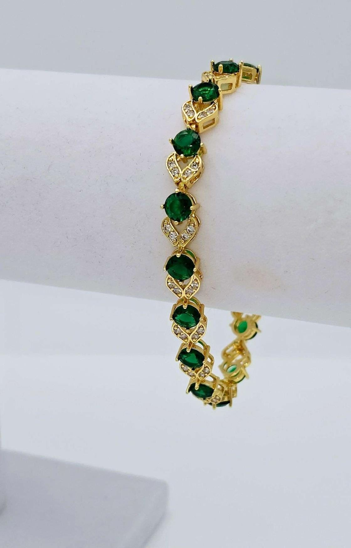 18 Kt Yellow Gold Plate 4 Piece Simulated Emerald Jewelry Set