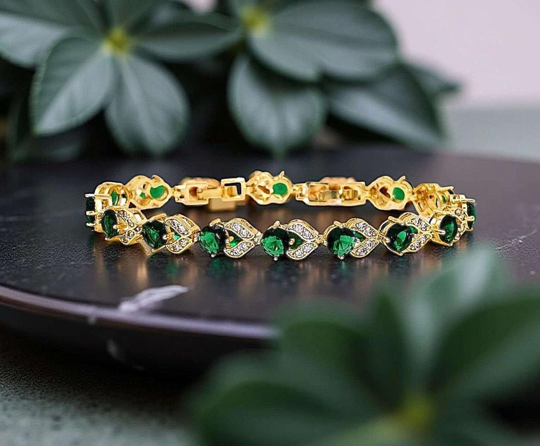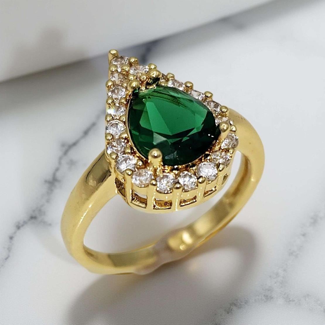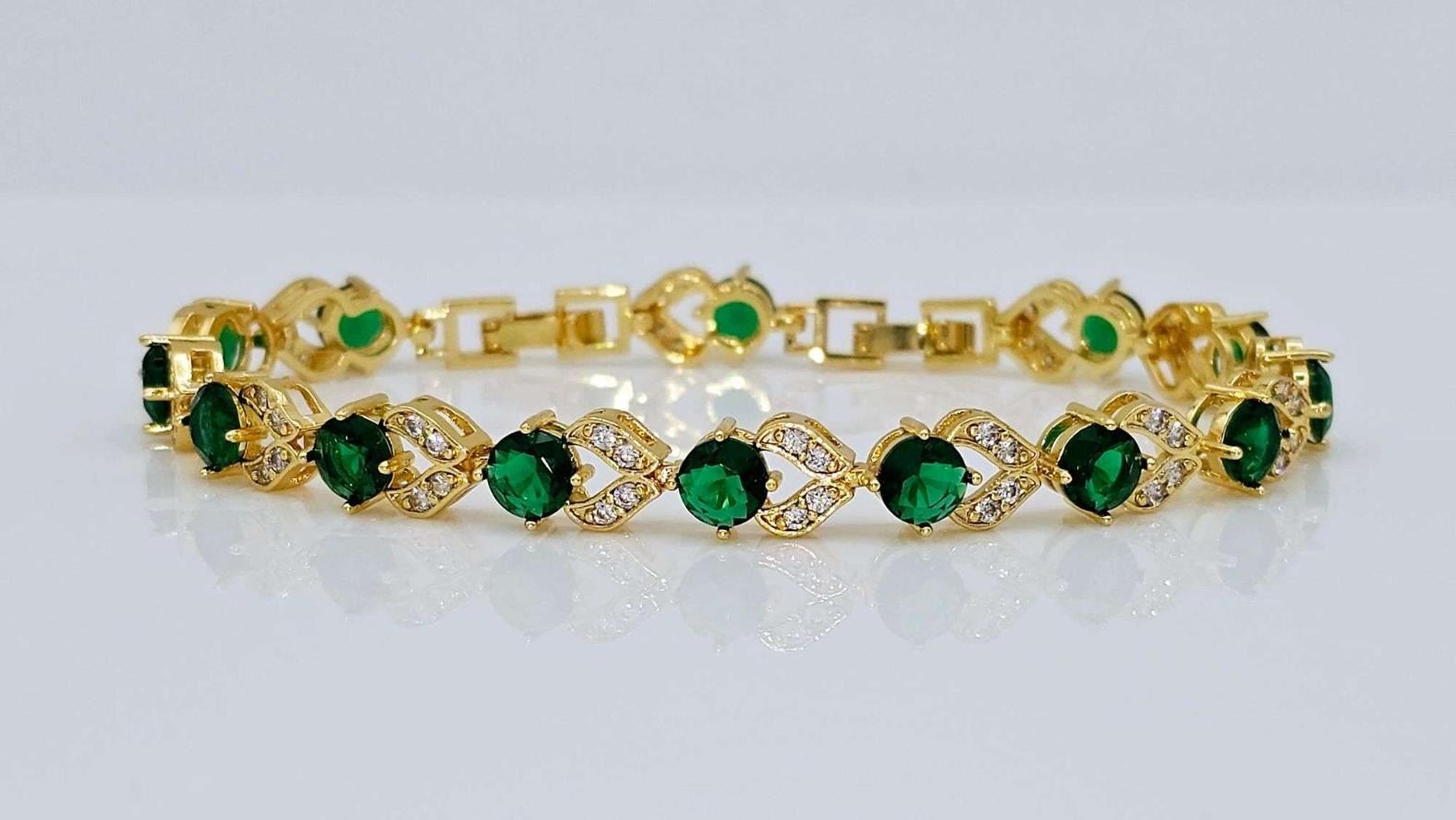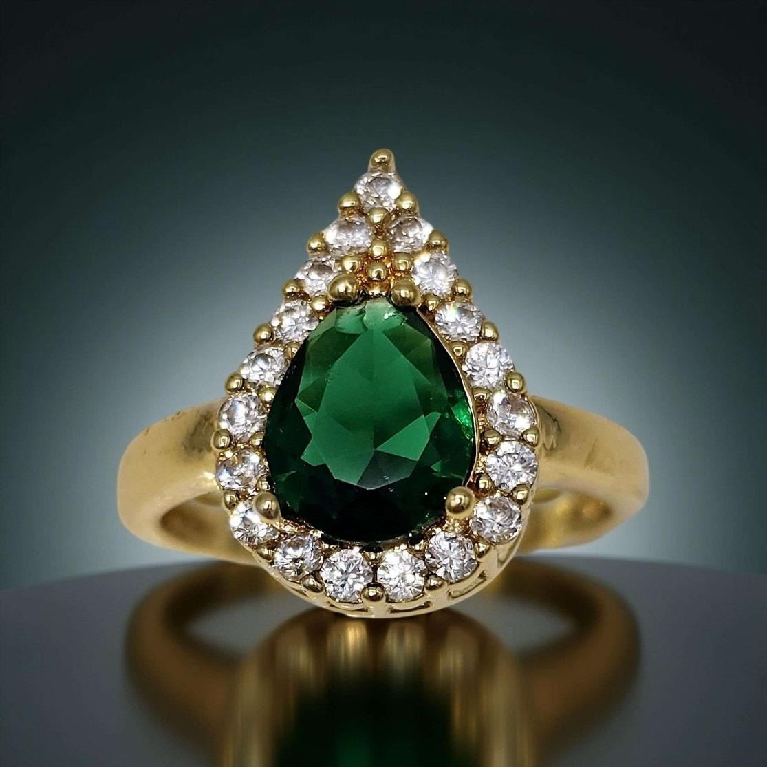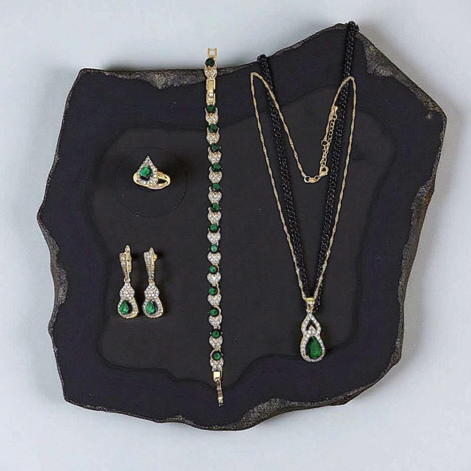 18 Kt Yellow Gold Plate 4 Piece Simulated Emerald Jewelry Set