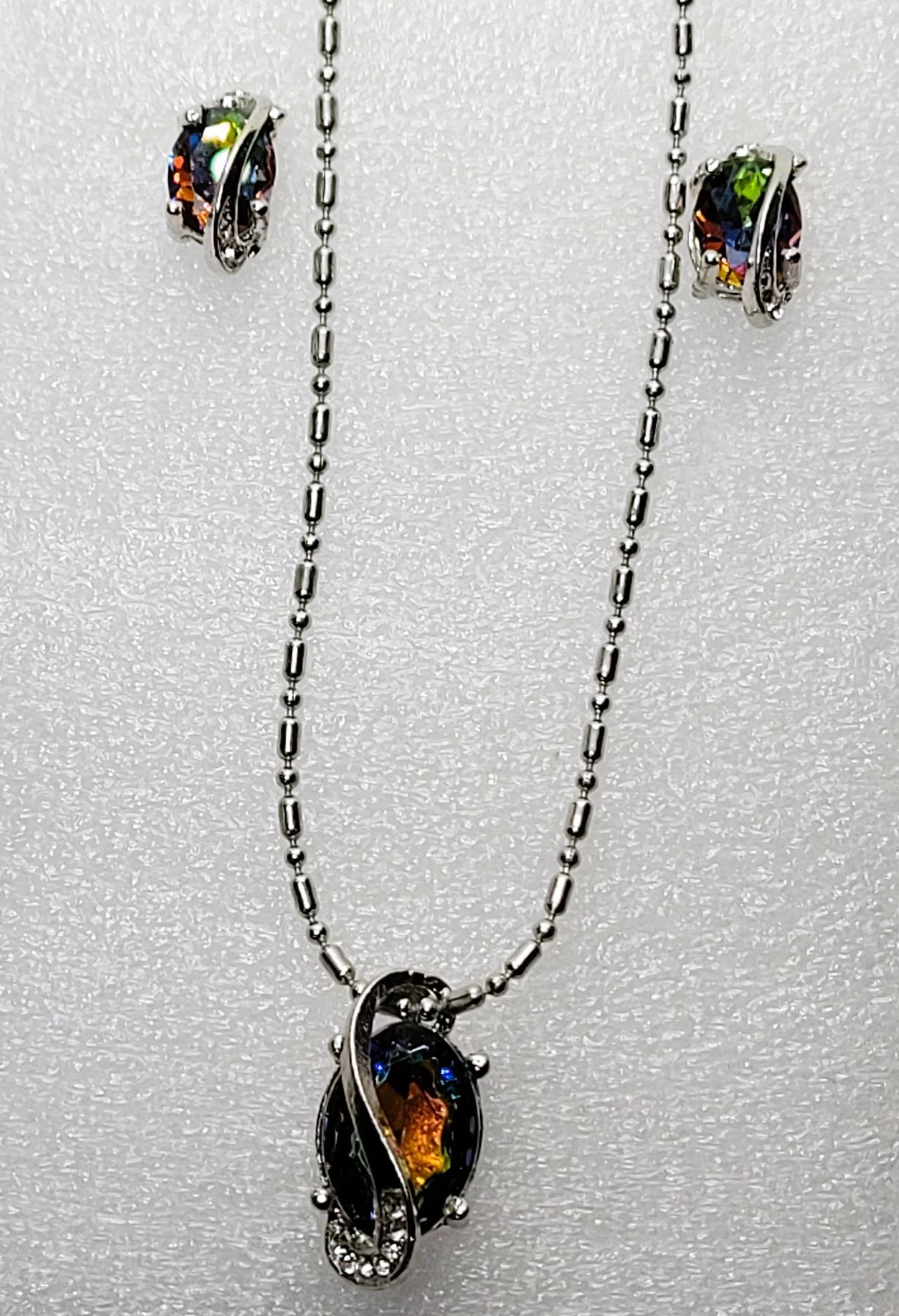 AND BALL 20" CHAIN AND MATCHING STUD EARRINGS.JEWELLERY