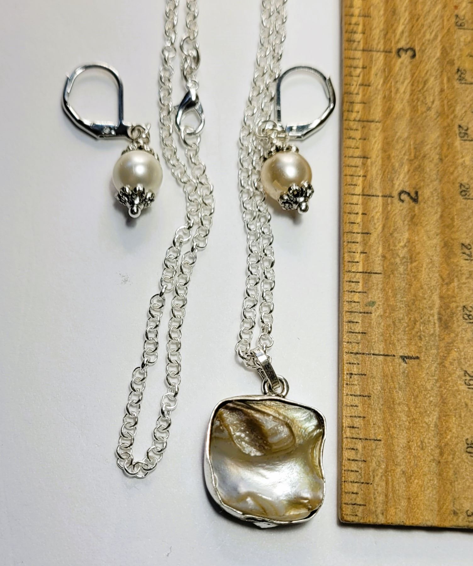 "O" RING CHAIN & FRESHWATER PEARL DROP EARRINGS ON NICKEL FREE FISHHOOK WIRES. JEWELRY