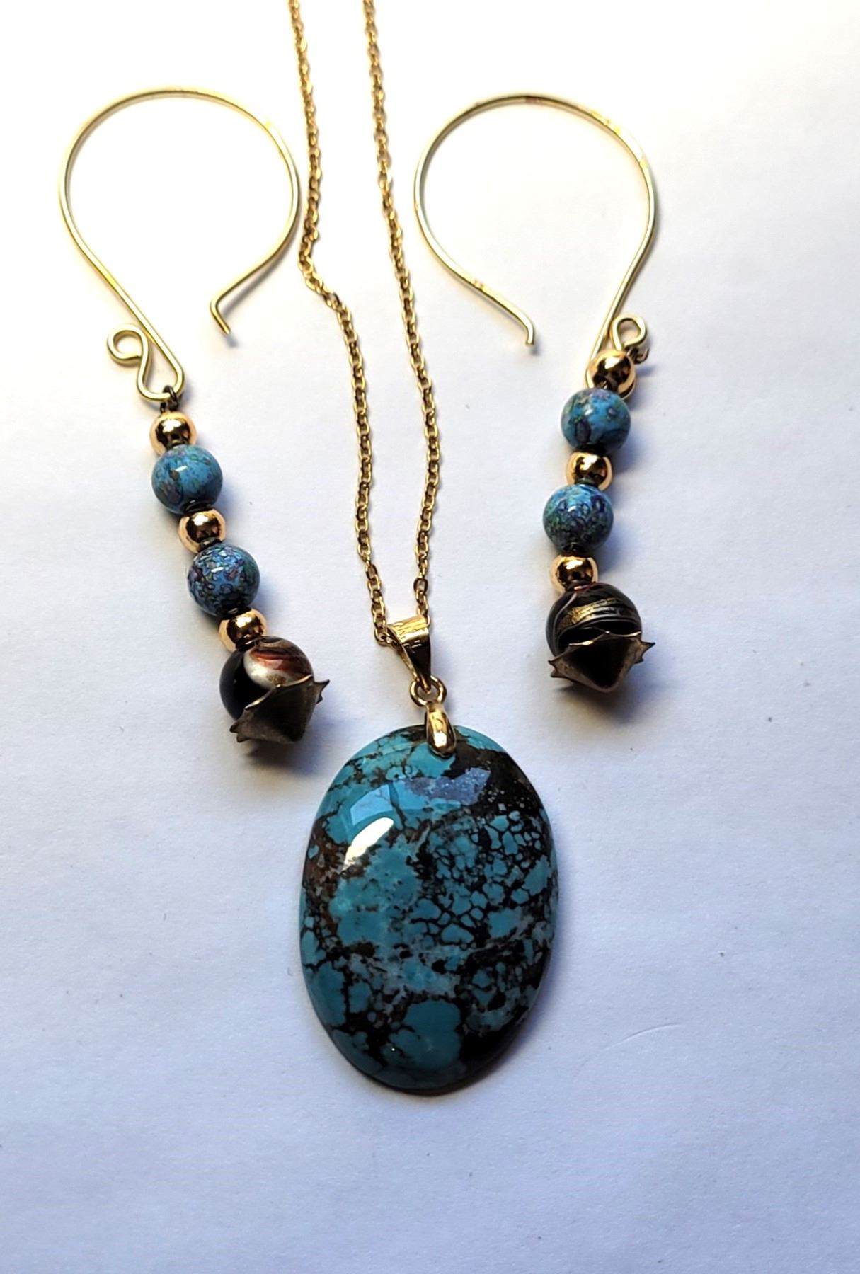 OVAL PENDANT ON 18" CHAIN & COORDINATING DROP EARRINGS. JEWELERY