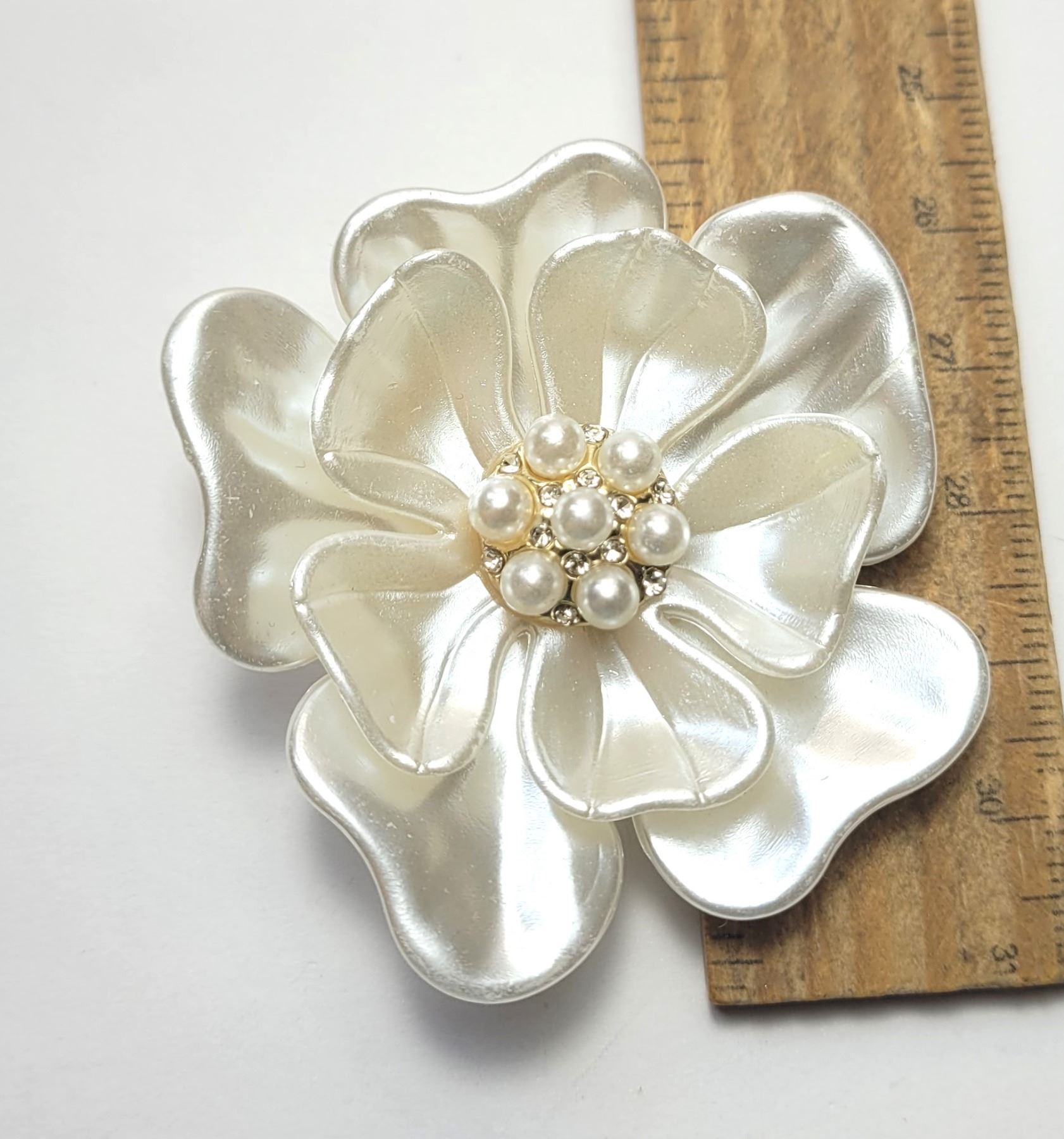 FLOWER BROOCH WITH CRYSTAL AND PEARL ACCENTS. JEWELRY