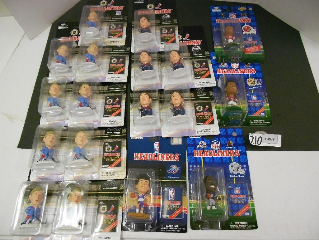 (18) NFL and NHL Headline Collector's Figures: - Wayne Gretzky - Patrick Roy - Marcus Allen - Michael Irvin - Ken Norton Jr. - John Stockton NIB For One Money