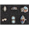 18 Native American Navajo & Zuni Sterling Silver Rings, sizes range from 5 to 10, includes turquoise, coral, mother of pearl, pink mother of pearl, malachite, sugilite, lapis, and coral, the inlay Sun God ring is signed FYC and the Zuni inlay bird ring is hallmarked with a picto graph ''arrow''
