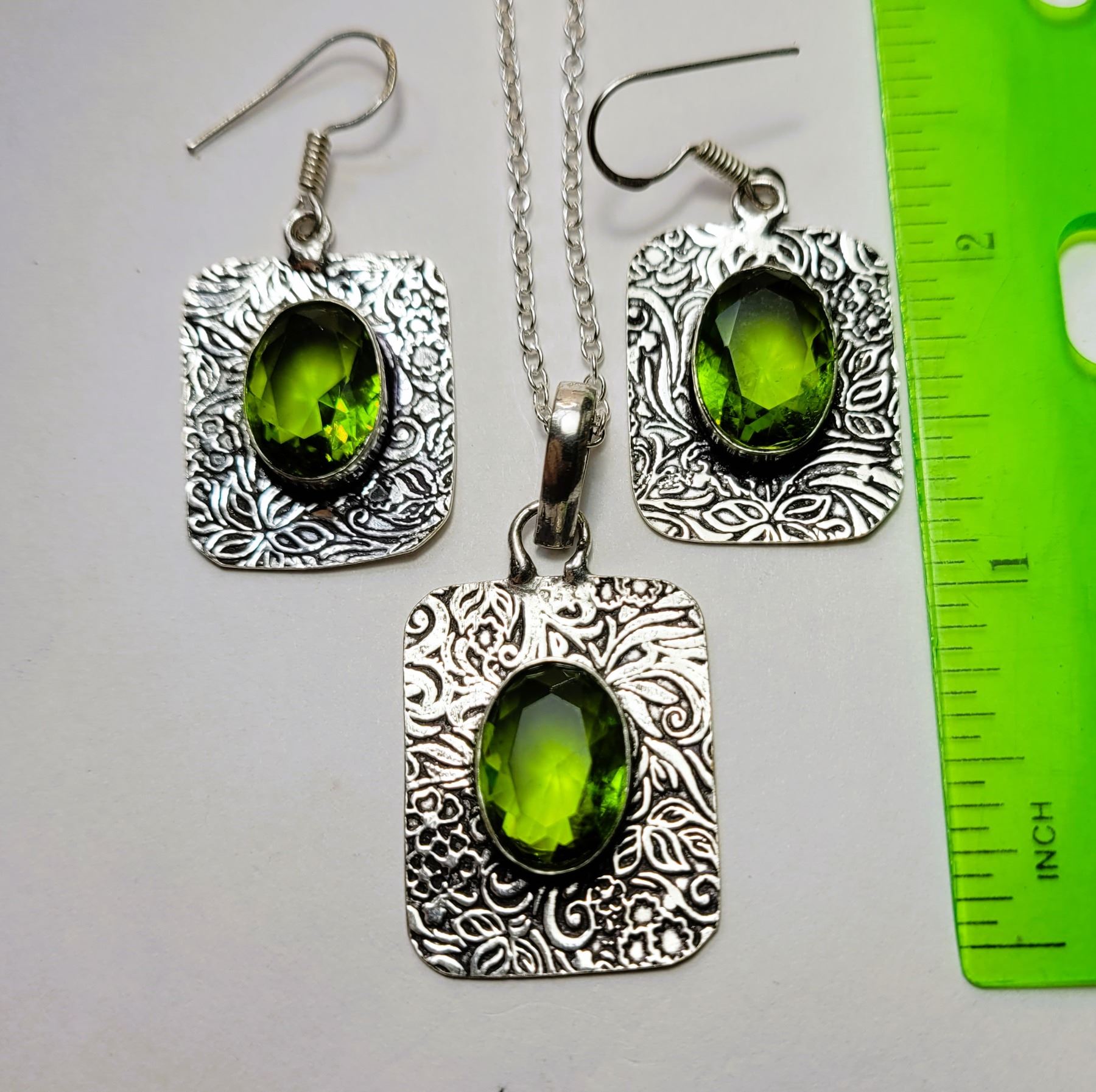 18) OVAL LAB CREATED PERIDOT SET OF JEWELRY,