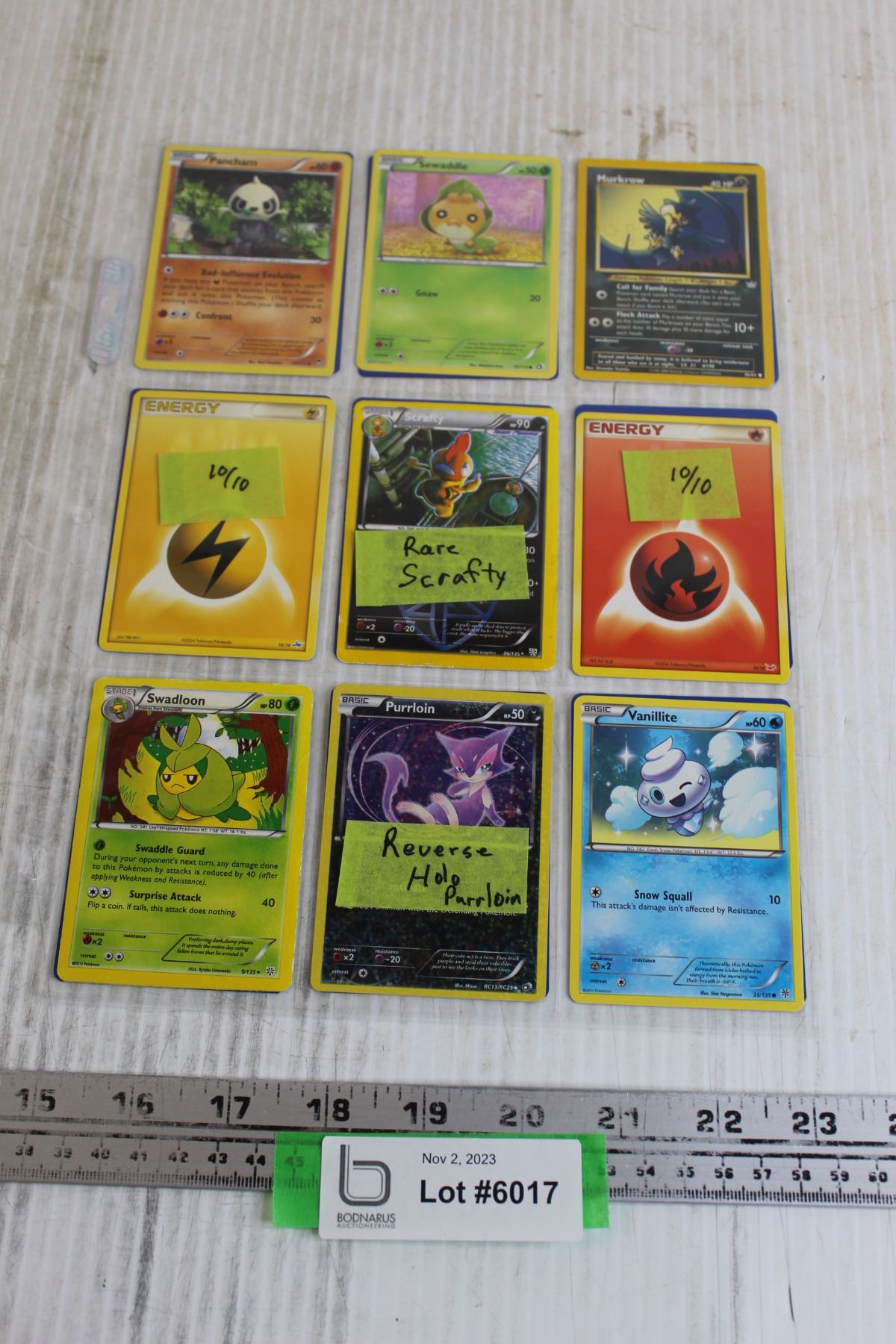 (18) Pokemon Cards - Rare Scrafty, Reverse Holo Purrloin