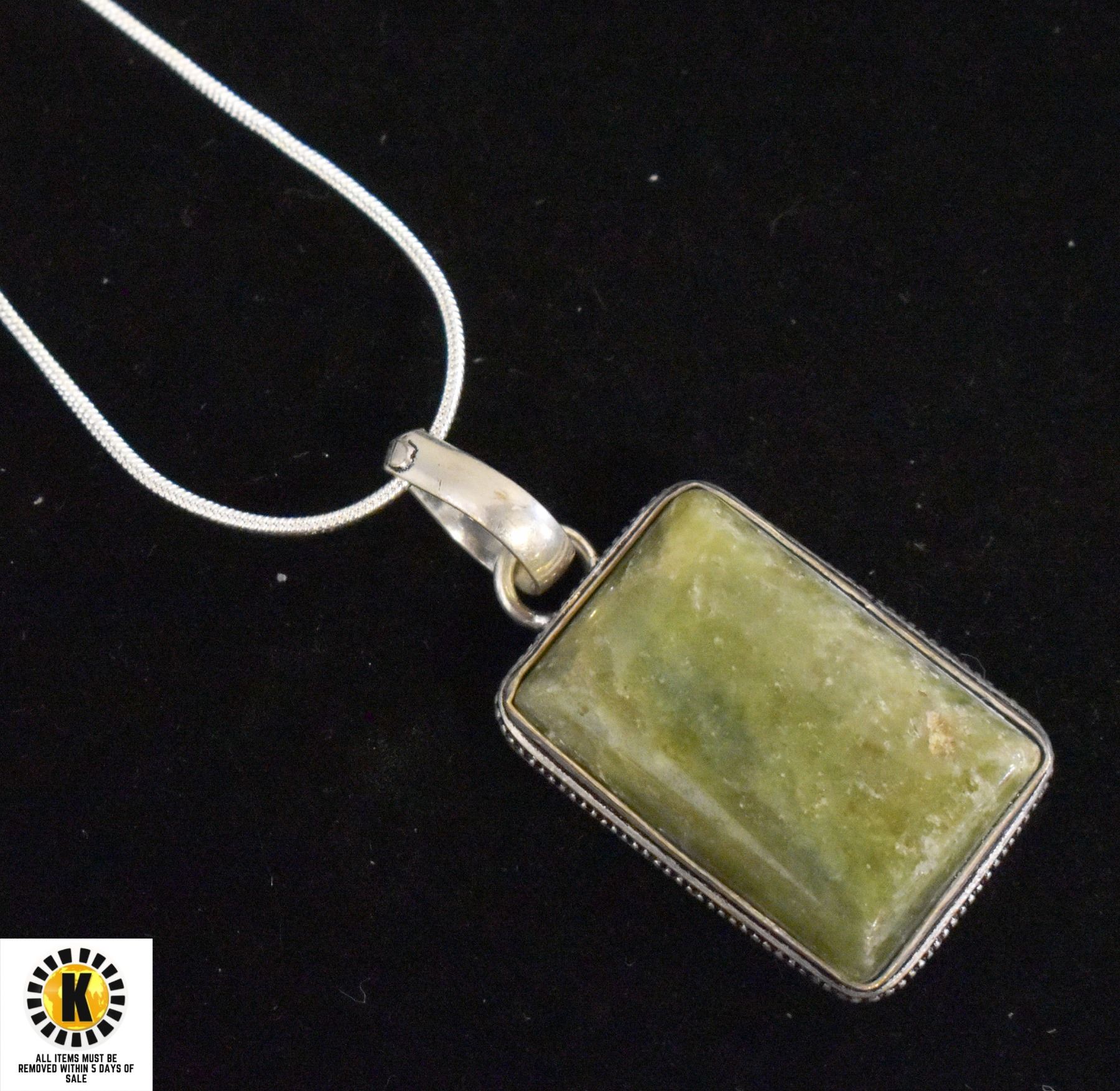 JASPER PENDANT ON 18" SNAKE CHAIN. JEWELRY