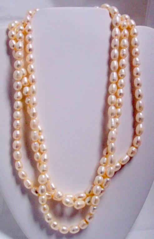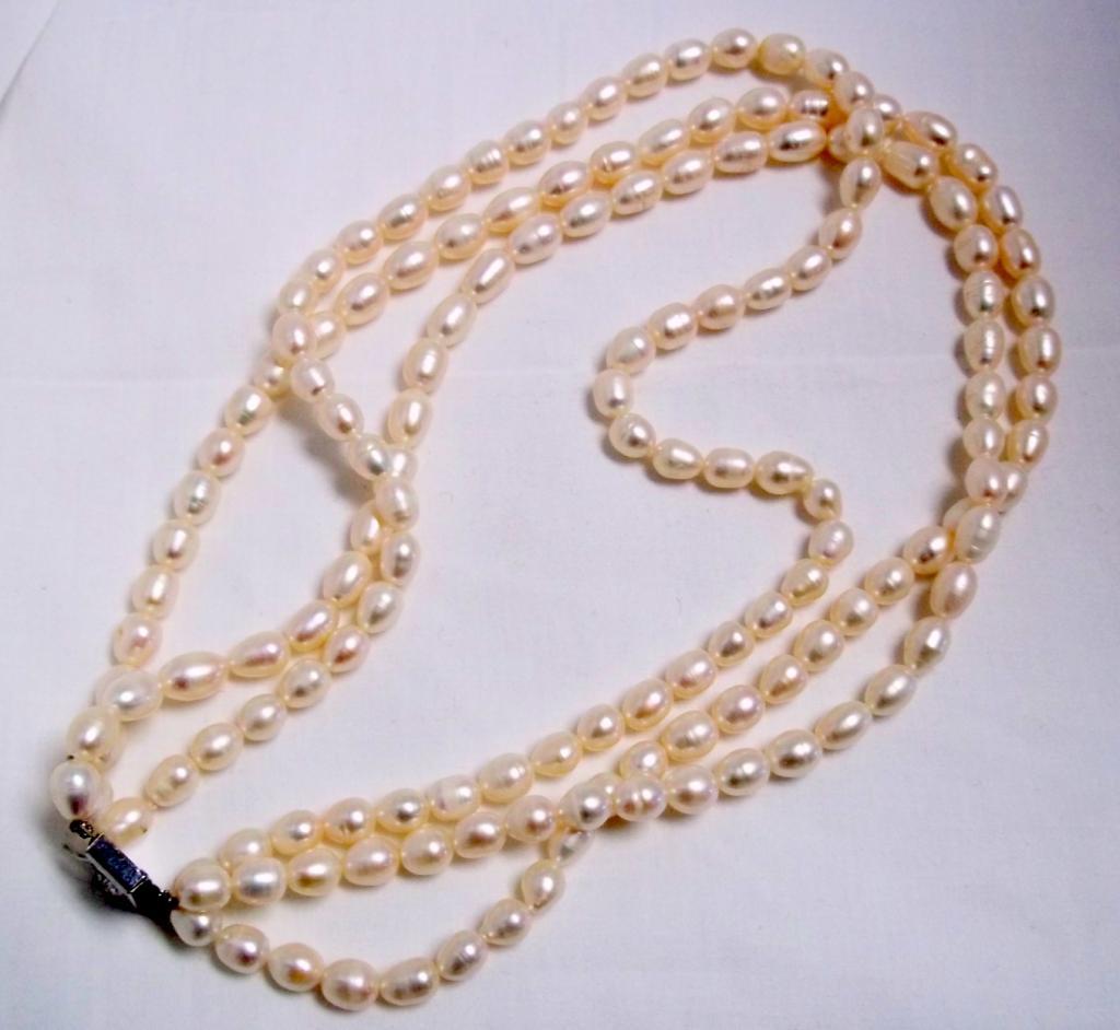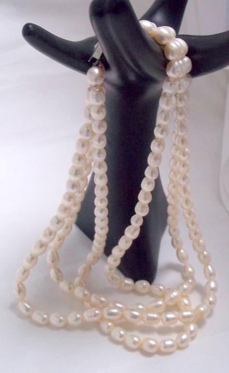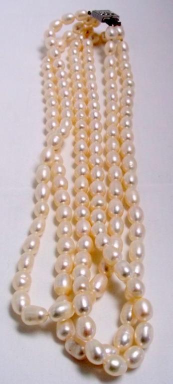 Just Gorgeous!! Three strands of 12mm rice pearls with a retail value of $1376-.