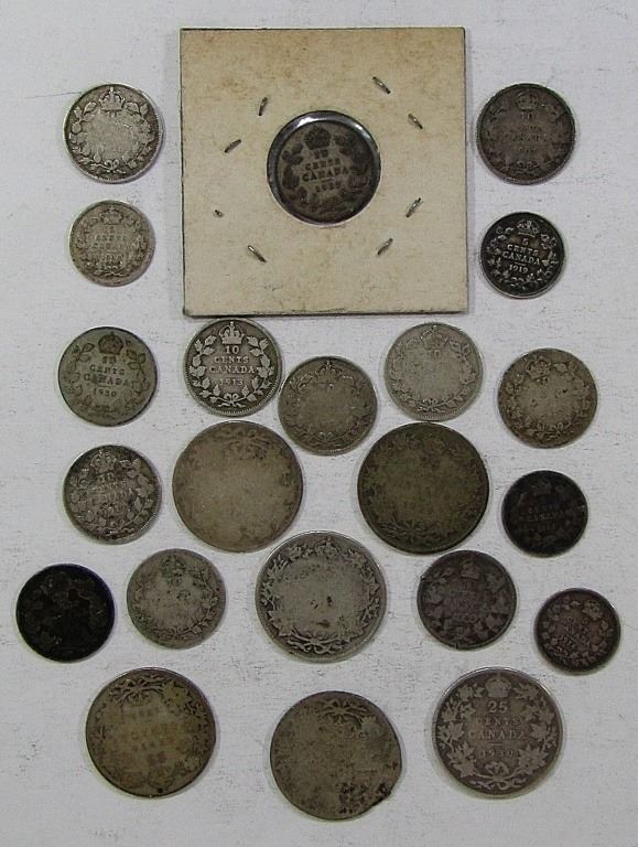 (4) EARLY 1900's 5 CENTS, (12) EARLY DATE 10 CENTS, (6) EARLY DATE 25 CENTS