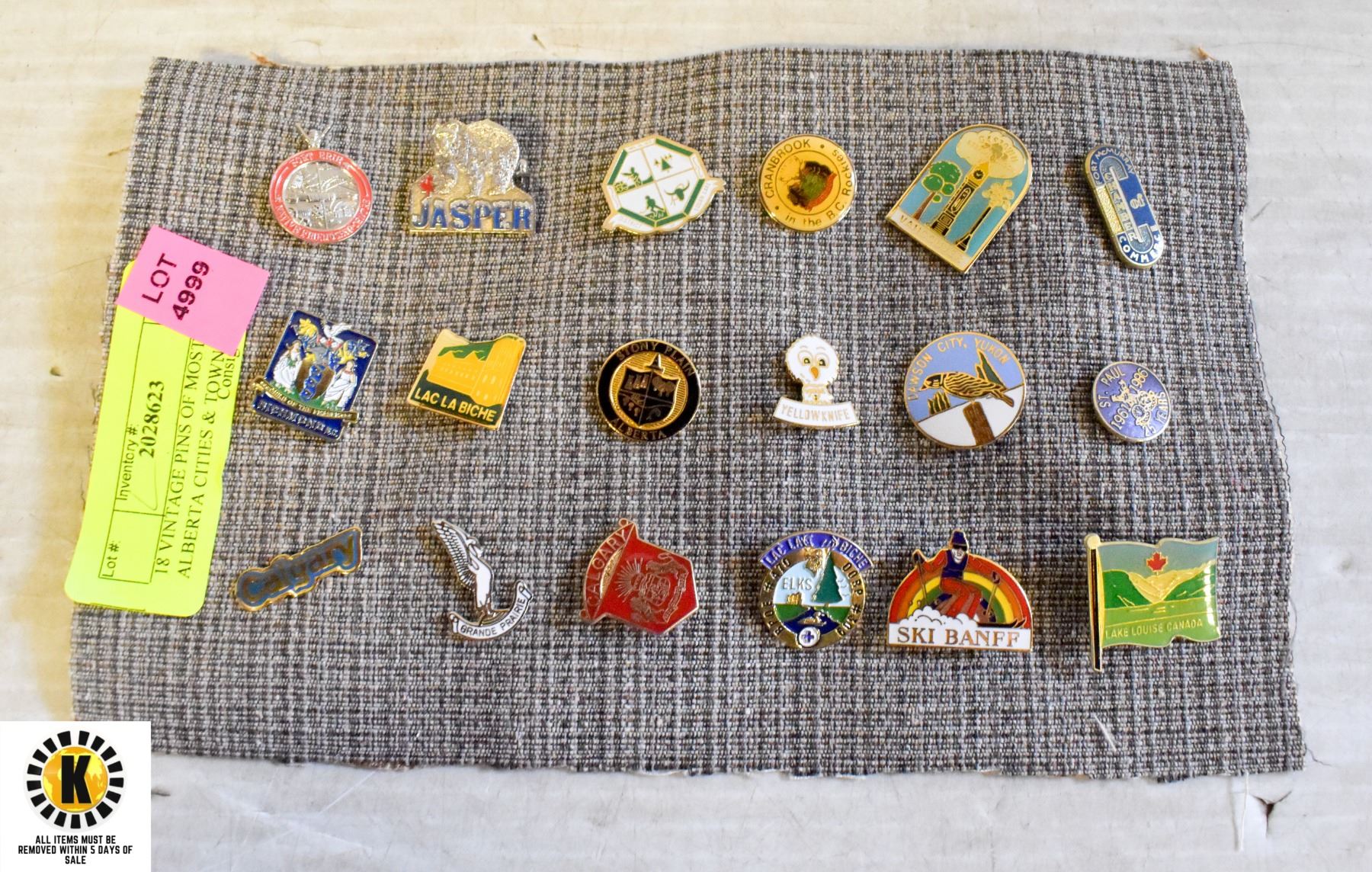 18 VINTAGE PINS OF MOSTLY ALBERTA CITIES & TOWNS