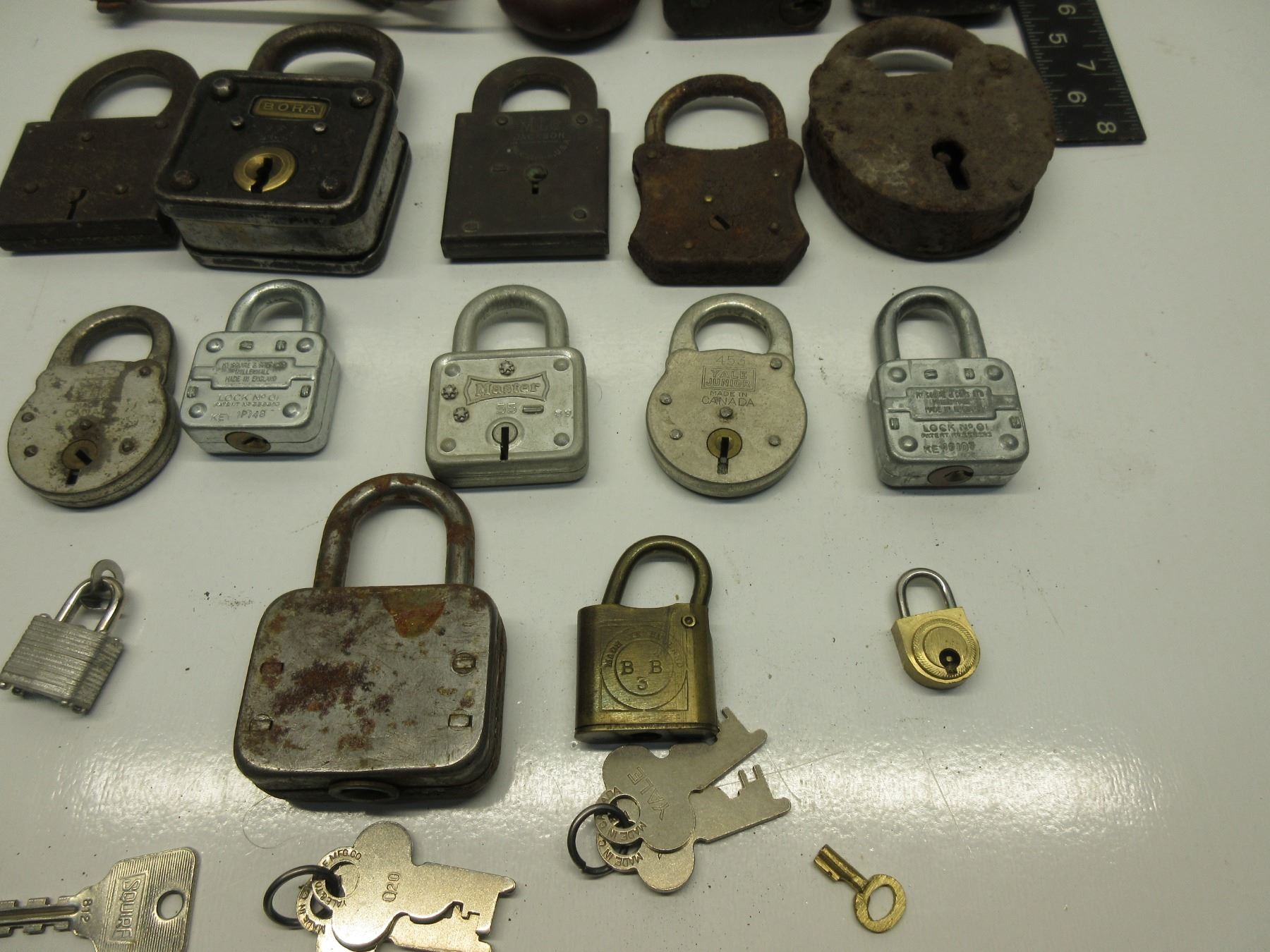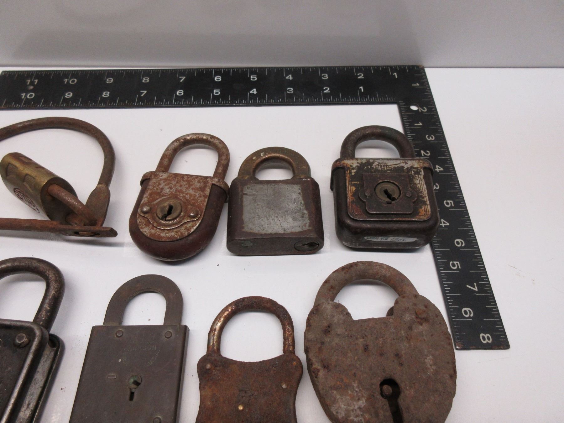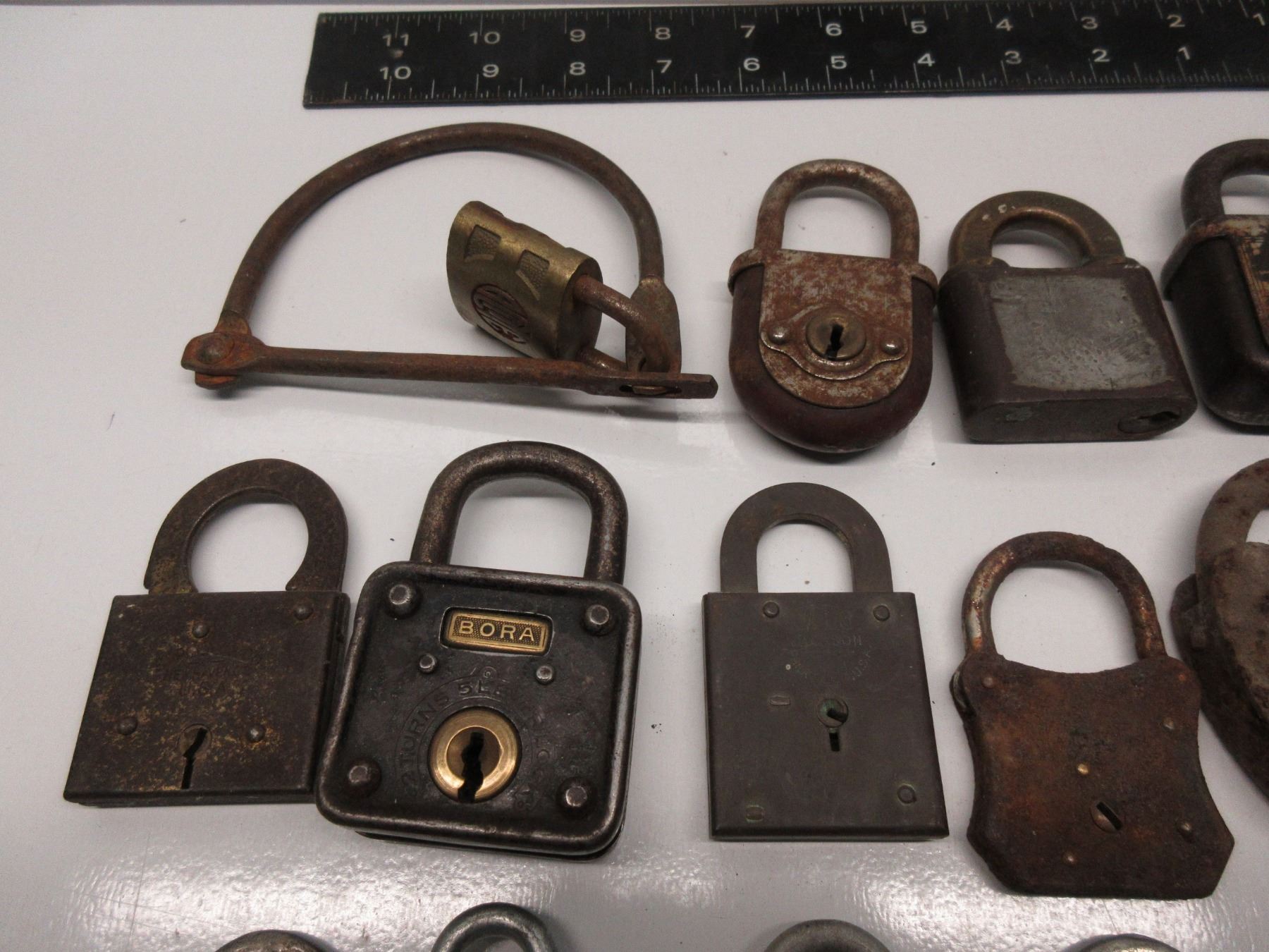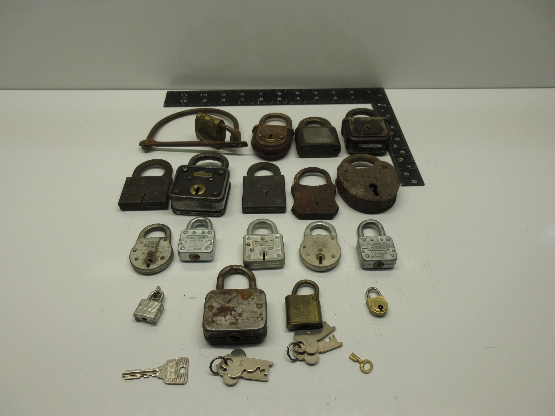 18 Vintage Padlocks and a few keys that don't fit any of them