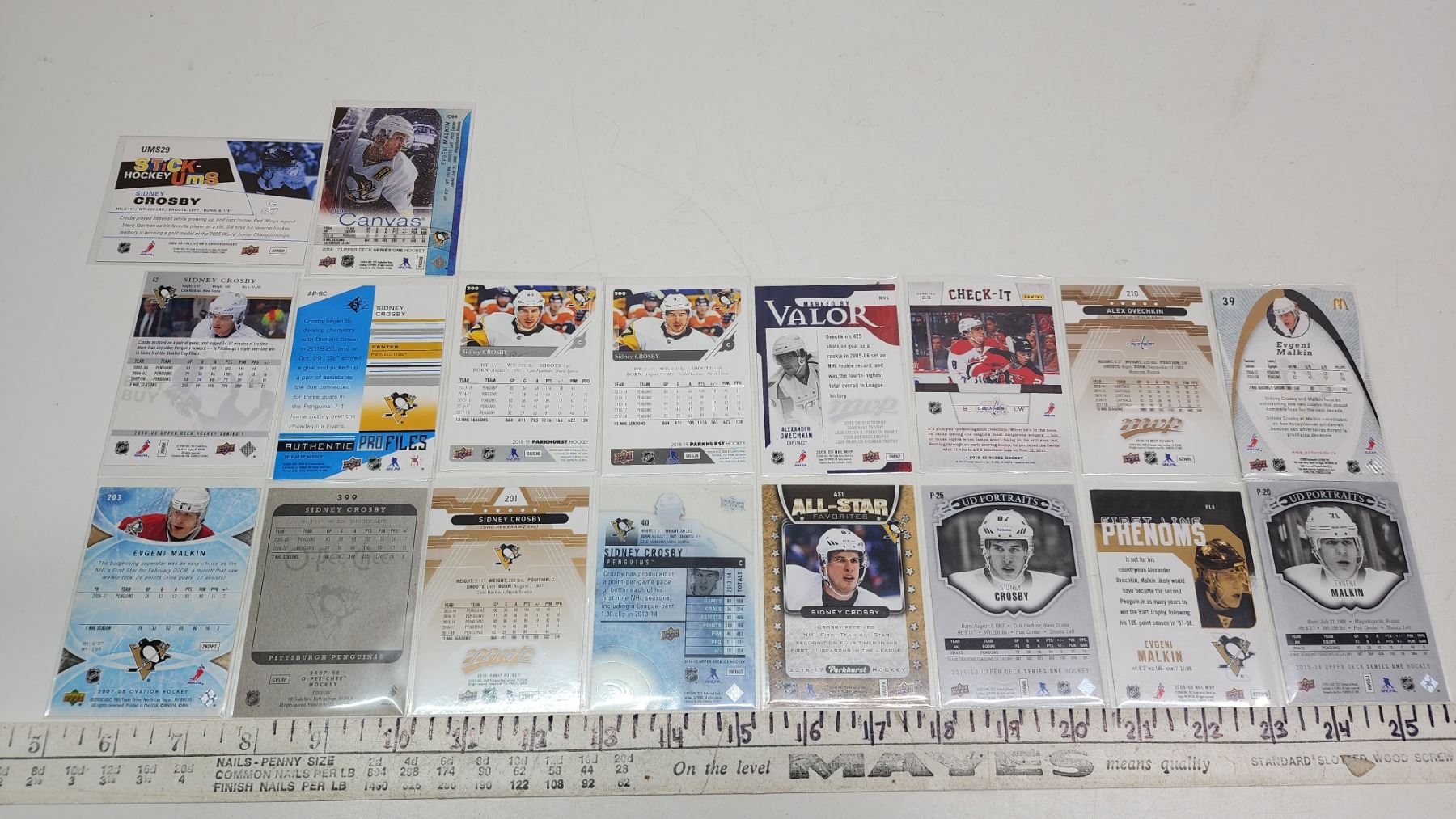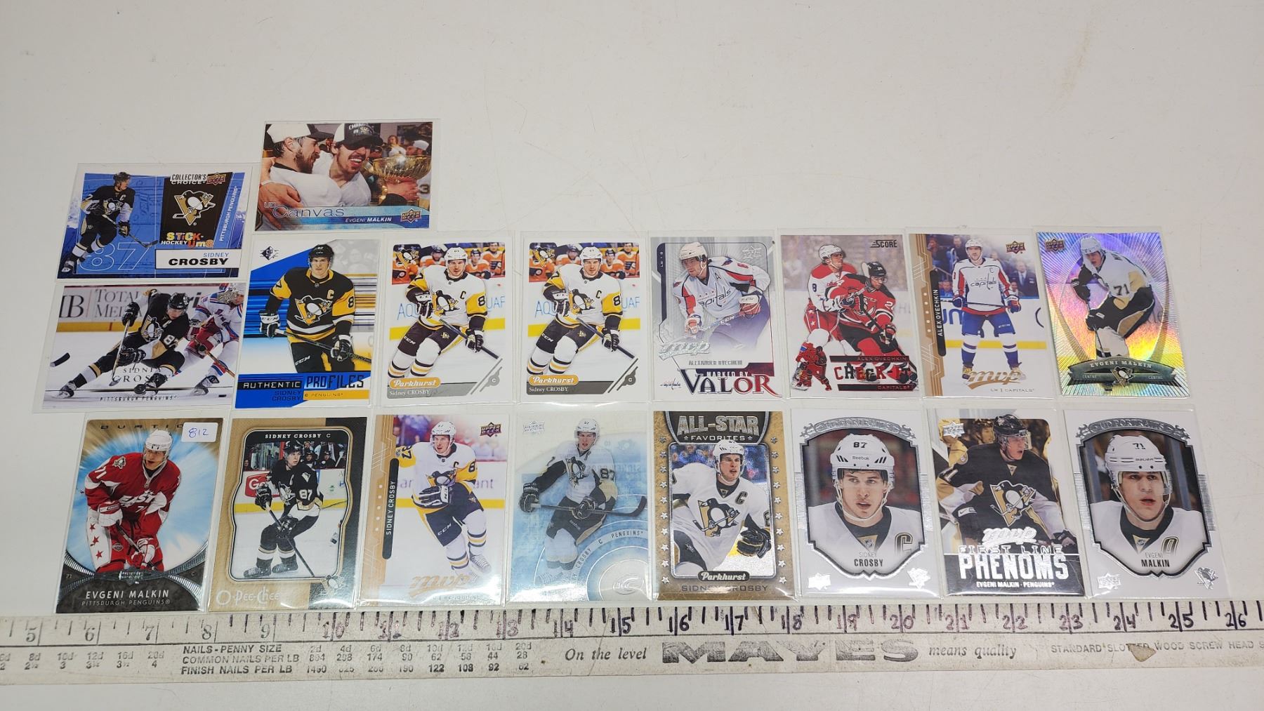 18 insert and base cards - Crosby, Malkin & Ovechkin