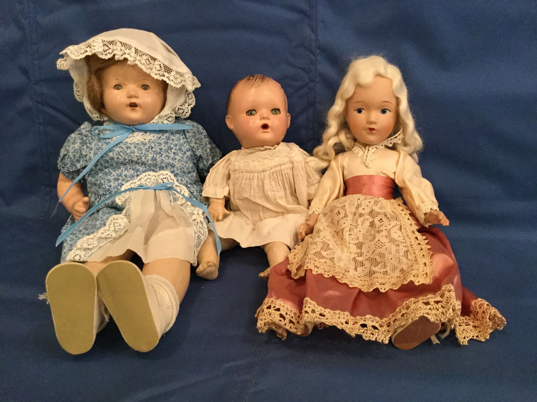 18" toddler of Compo and cloth, 14" 6 piece compo, 1930's 12" composition