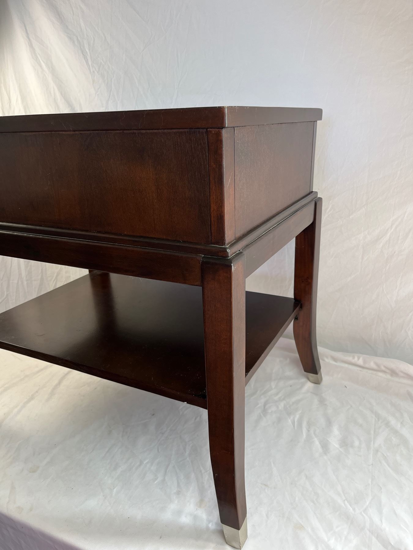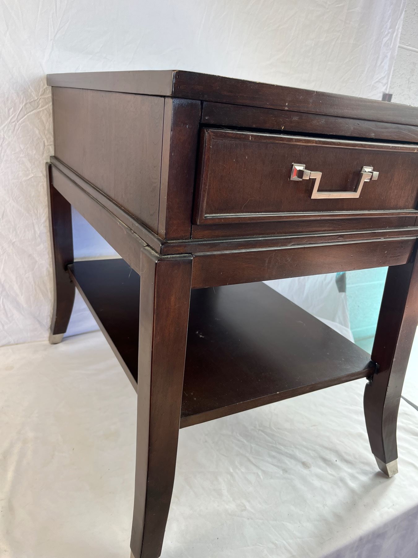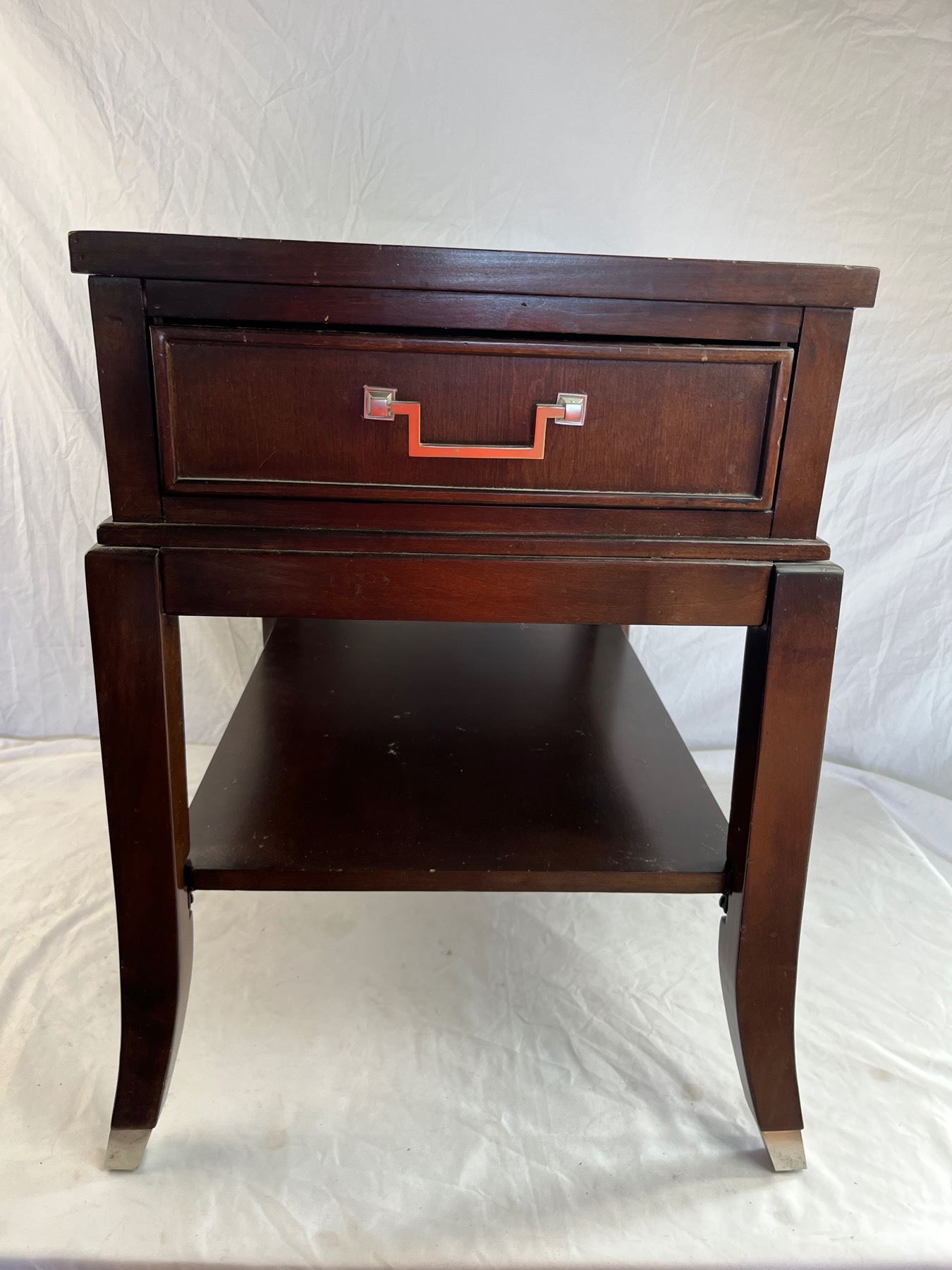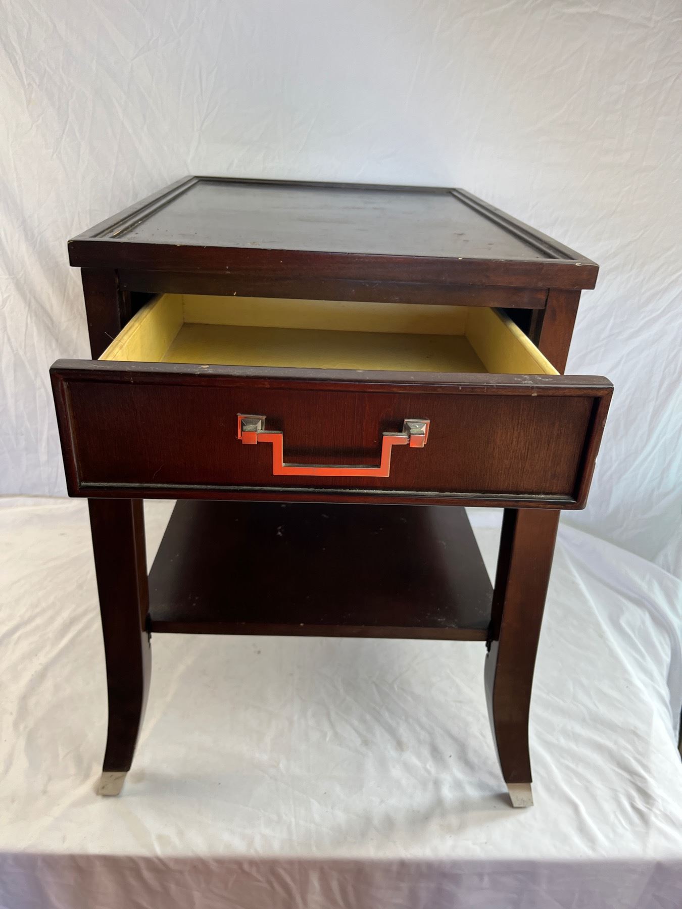 Stands 25" tall with 18"x25" top and front drawyer. Scuffing evident on surface and legs are loose.