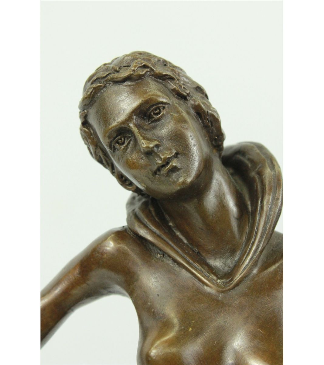 18"x9.5" SEXY SEDUCTIVE NUDE GIRL BRONZE SCULPTURE SIGNED EROTIC ART DECO MARBLE FIGURE 12 LBS.
