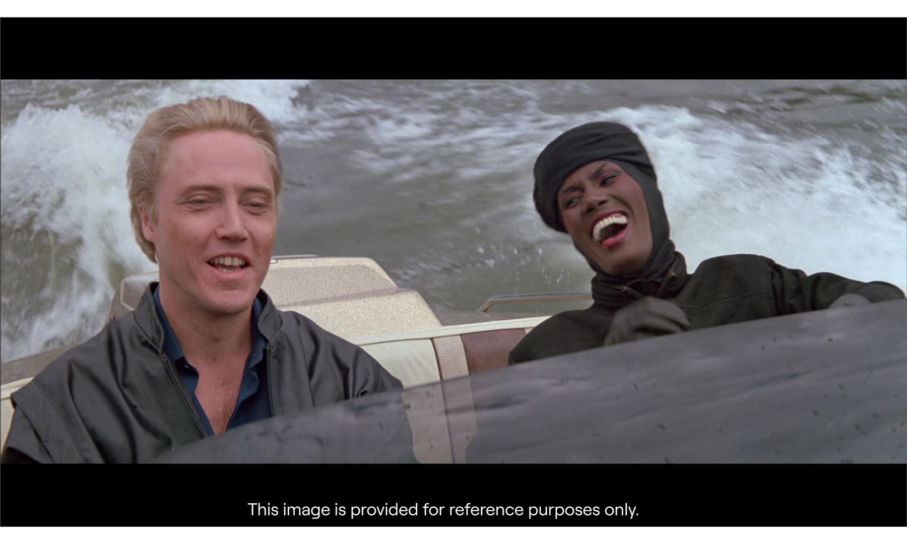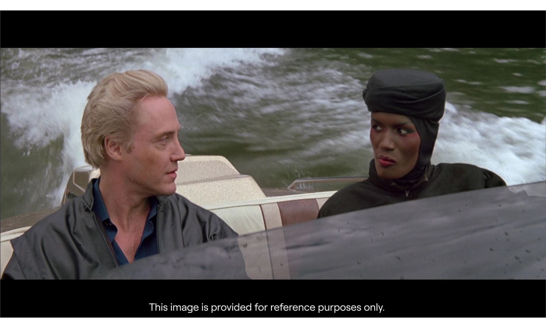JAMES BOND: A VIEW TO A KILL (1985) - May Day's (Grace Jones) Costume - May Day's (Grace Jones) costume from John Glen's James Bond: A View to a Kill. May Day wore her costume during a butterfly performance where she used a rigged butterfly to murder Aubergine (Jean Rougerie) before being chased from the scene by James Bond (Roger Moore) to the top of the building where she dove off the side to escape.