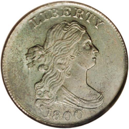 <B>1800<1/2 C> MS63 Brown NGC.</B></I> C-1, B-1, R.1. The only 1800-dated die variety. The left foot of the T in LIBERTY is missing, the hair curl near the 1 in the date is open at its base, and a die break nearly joins the E in UNITED to the wreath. A faint die crack connects the tops of NITE in UNITED. A nicely struck, lightly abraded, and satiny piece with luminous chocolate-brown and deep-green colors. Census: 15 in 63, 5 finer (3/06). EAC 55. <BR><BR><B>Important notice:</B> Heritage usually auctions material at the rate of 200-250 lots per hour. On some occasions eBay Live bid software or the Internet may not be able to keep up with the pace of the auction. We recommend placing a realistic absentee bid now as insurance to avoid disappointment. Occasionally the auctioneer may eliminate or reject an eBay Live bid, and the auctioneer may also reopen a lot after the close of the eBay live bidding (usually because we missed an audience bid), and may reject your bid even if it shows you as the winning bidder. By bidding via eBay Live, you agree that Heritage may award the lot to another bidder at its sole discretion under the circumstances described above or any other reasonable circumstances. Since eBay bids are not shown to us until we open the lot on the floor, we treat those bids just like floor bids. In most cases the floor responds before the eBay bid is presented to us, due to Internet lag time, so for consistency we have made it a policy that floor bids are always considered first over tie eBay live bids. Also please note that all Heritage lots purchased through eBay Live carry a 20% Buyer's Premium. Please make sure you read the Terms and Conditions before you bid. This lot is being auctioned in conjunction with a live floor auction by Heritage Galleries & Auctioneers. All final auction and invoice information will be supplied by Heritage Galleries & Auctioneers, and all other information should be considered preliminary. Lot:206 <BR><BR><B>Winning Notification and Billing:</B> After the FINAL session in this auction is complete, Heritage will send e-mail and snail mail invoices. This process normally takes several days. All final auction and invoice information will be supplied by Heritage Galleries & Auctioneers, and all other information should be considered preliminary. <BR><BR>This auction will be conducted on a live auction floor and over the Internet through eBay Live. If you choose to place an absentee bid, please take a moment to <font color='#0000ff'><u><a href='http://pages.ebay.com/liveauctions/help/before/laabsentee.html'>learn how eBay Live absentee bidding works</a></u></font><font color='#000000'>