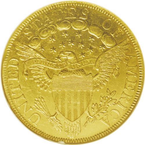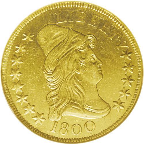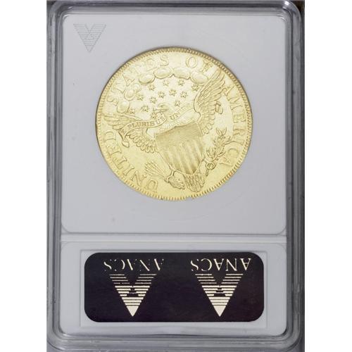 <B>1800<$10>--Rims Filed, Tooled--ANACS. AU55 Details.</B></I> B. 1-A, Breen-6842, Taraszka-23, R.4. As suggested by its small reported mintage of 5,999 pieces, the 1800 is substantially more rare than the 1799 eagle, although it carries only a small premium due to the significant type demand for the Capped Bust, Heraldic Eagle series. Just one die marriage is known for the 1800 eagle, a sharp reduction from the ten die pairs used for the 1799. The present piece shows slight wear on the bust truncation, chin, and forehead, but the strike is intricate. Minutely granular from a cleaning, and a cluster of pinscratches above the arrows explains the overly harsh "Tooled" designation. Lesser pinscratches are also near the final obverse star. A minor rim ding is seen at 9 o'clock, but there is little indication of rim filing.