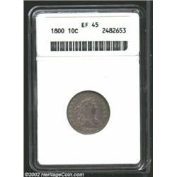 1800 10C XF45 ANACS. Lightly worn with a bit of gold color on even grey surfaces. Little luster rema