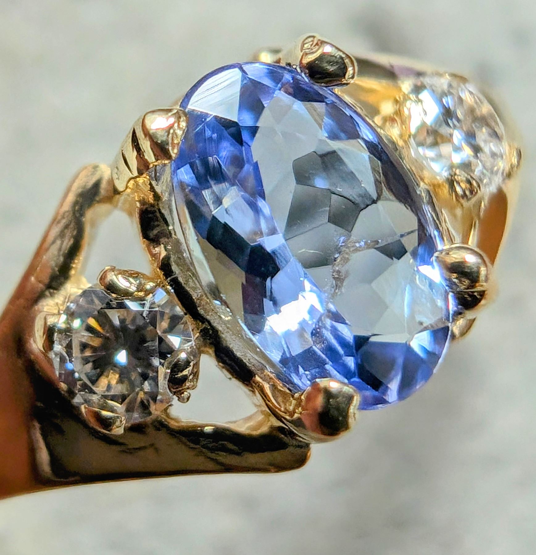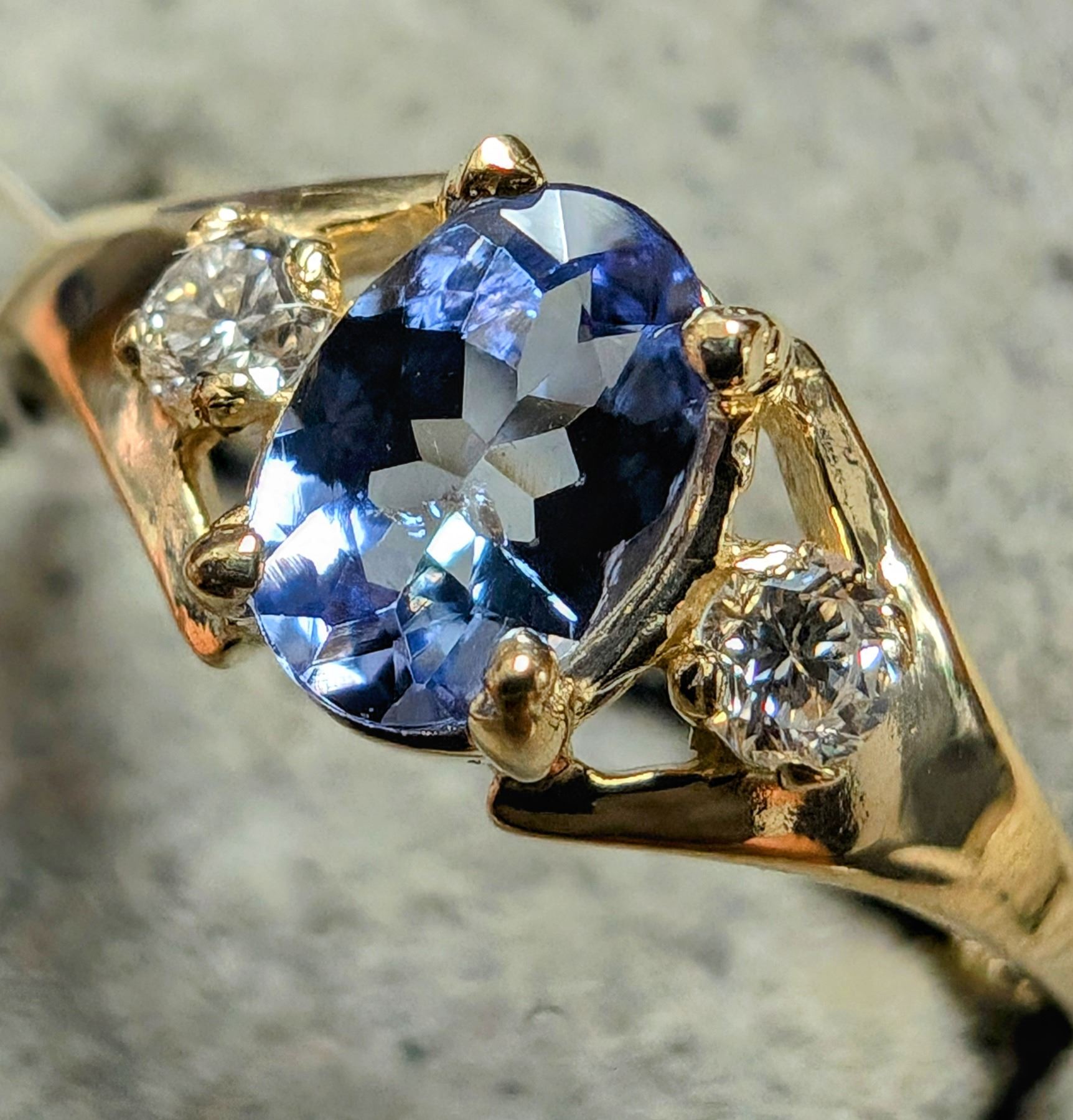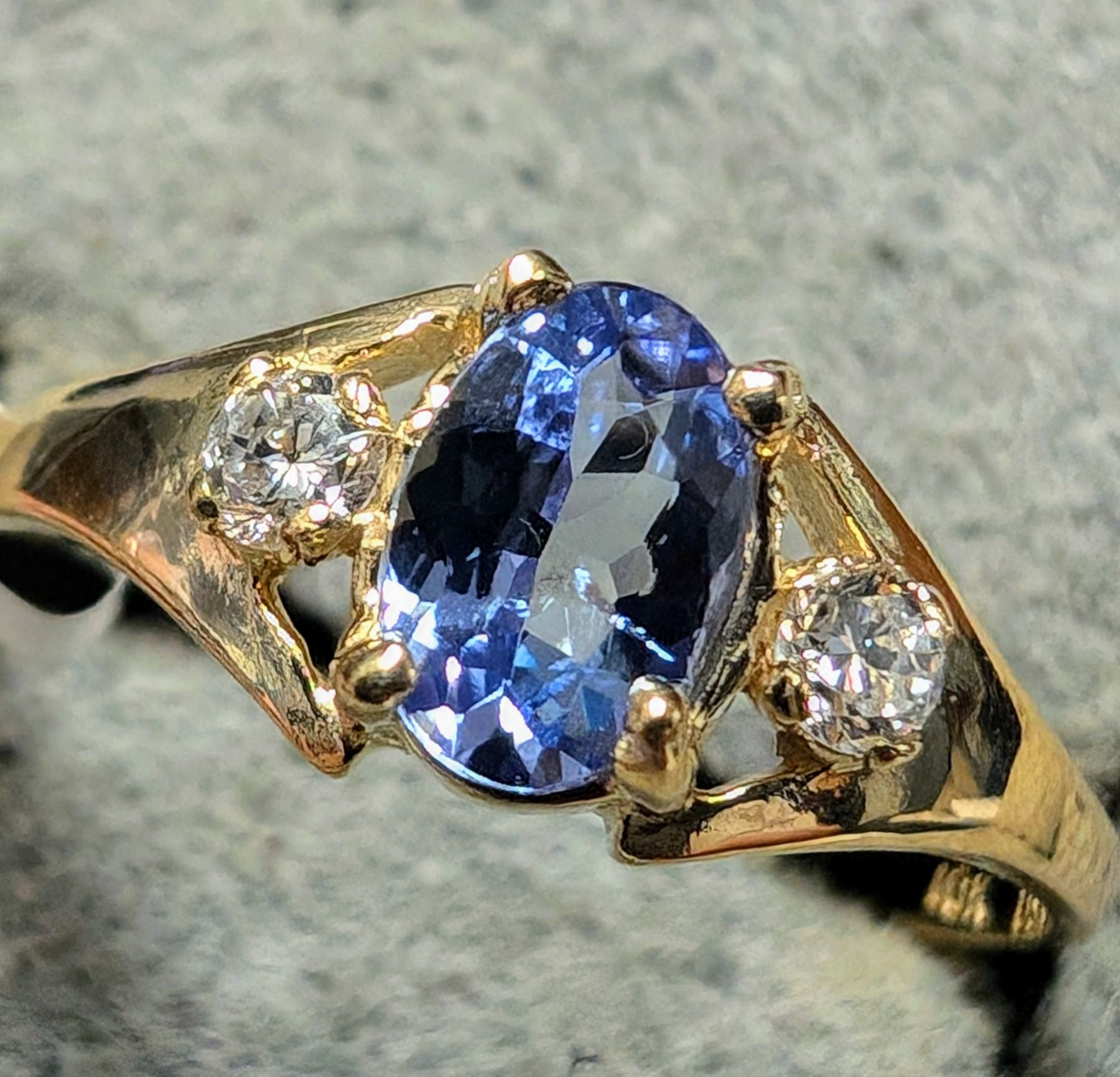 $1800, 10K(1.2g), TANZANITE (0.35ct), LAB DIA (0.06ct)RING, size 6.5, appraised value $1800, ring resizeable for $50