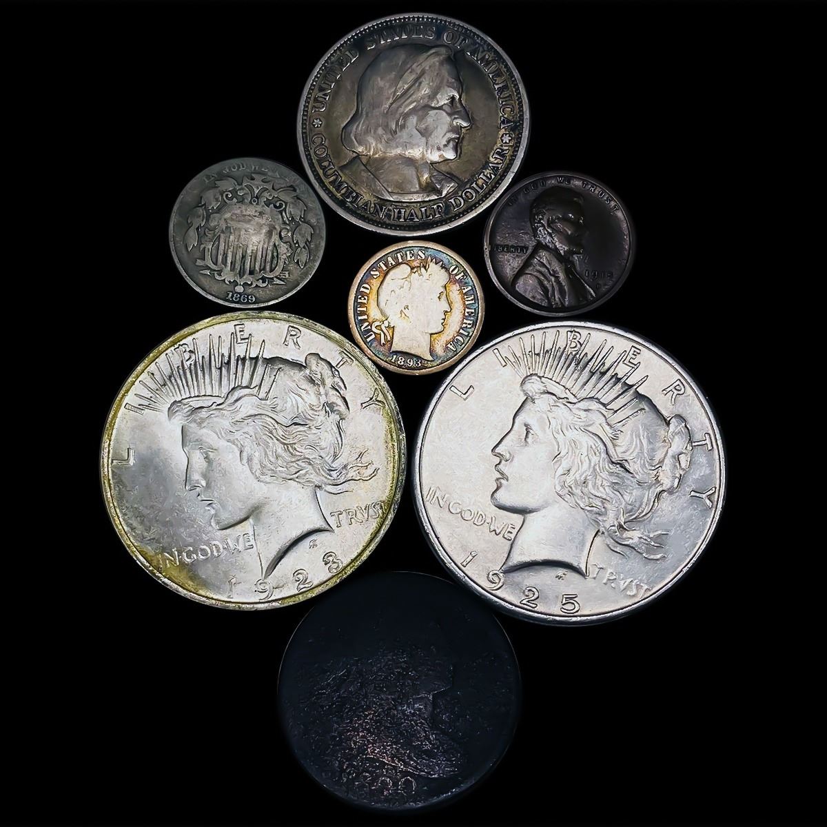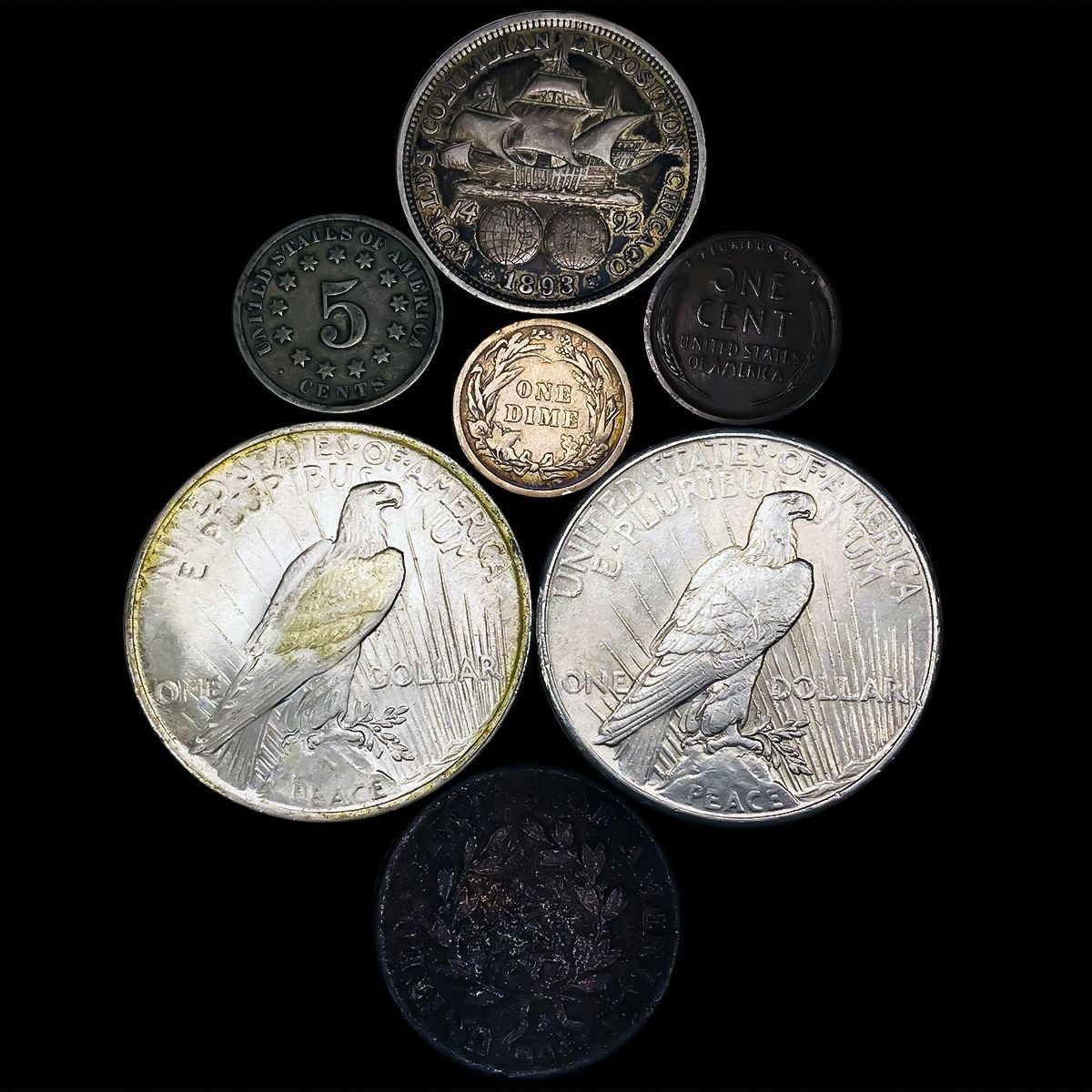 1800 - 1925 5C Sheild, $1 Peace, 50C Columbian,
