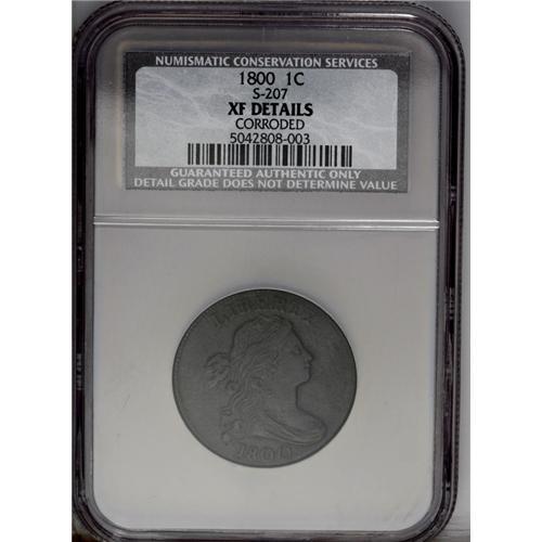 <B>1800<1C>--Corroded--NCS. XF Details.</B></I> S-207, B-28, R.3. A lightly worn dark brown example with significant areas of corrosion on both sides. A heavy cud is centered below the denomination on the reverse. EAC 12.