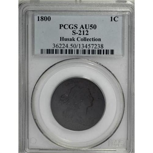 <B>1800 1C Normal Date. AU50 PCGS. S-212, B-20, R.3. </B></I> <B>Noyes VF35; CC-8. Photo #36122. Our EAC Grade VF35.</B></I><BR><BR><B>Equivalents.</B></I> McGirk 4M; Ross 18; Clapp-Newcomb 25; EAC 22; <I>Encyclopedia </B></I>1737; PCGS #1449.<BR><BR><B>Surfaces.</B></I> Intermingled light and medium brown with splashes of darker steel toning on both sides. The sharpness is slightly finer with moderate abrasions, faint hairlines, and minor reverse surface roughness.<BR><BR><B>Variety. </B></I>Die chips below 00. Spike inside C of CENT. The obverse appears on S-212. The reverse appears on S-212.<BR><BR><B>Die State VI. </B></I>The latest die state recorded by Breen, with prominent die cracks across the upper obverse, and advanced die failure at ERTY. <BR><BR><B>Census. </B></I>The three finest examples that Bland records all grade AU50, but two of those coins are ANS Collection specimens. The same collection also holds an XF piece. Although this coin ranks eighth finest for the variety, it is actually fifth finest of those available to collectors.<BR><BR><B>Commentary. </B></I>The black and white illustration at lot 295 in the 2000 ANA catalog is incorrect, but repeats the S-211 in lot 294. The color plate in the same catalog has the correct photo of this coin.<BR><BR><B>Provenance. </B></I><I>Heritage (10/1995), lot 5669; Bowers and Merena (3/1998), lot 169, $1,540; Thomas Reynolds (1998); Robert Clark; Bowers and Merena (8/2000), lot 295, $2,990; Thomas Reynolds (8/2000).</B></I><BR><BR><B>Personality. Robert C. Clark </B></I>joined EAC in 1978. Working in financial services, he has collected and owned numerous Condition Census large cents. Among the coins bearing his pedigree is the Marsh specimen of the 1794 Starred Reverse cent, S-48. Bowers and Merena sold his collection of 104 high-quality large cents at the 2000 ANA Convention sale. At the time, Clark noted that some collectors have an "O-Four Dollar" but he has a "Dollar-O-Four." He is currently building a second collection.<BR><BR><b>Shipping:</b> Coins & Currency (<a target="_blank" href="http://www.heritageauctions.com/common/shipping.php">view shipping information</a>)