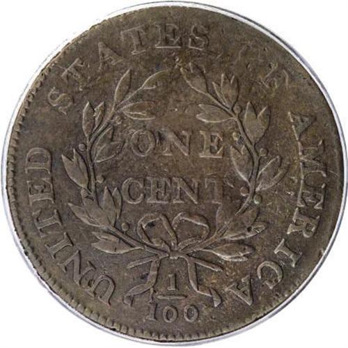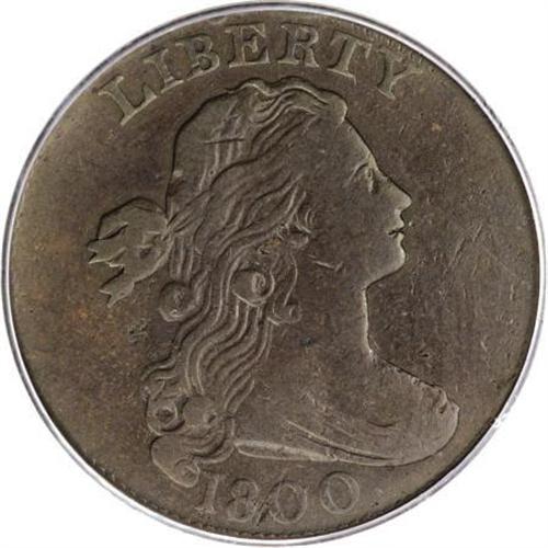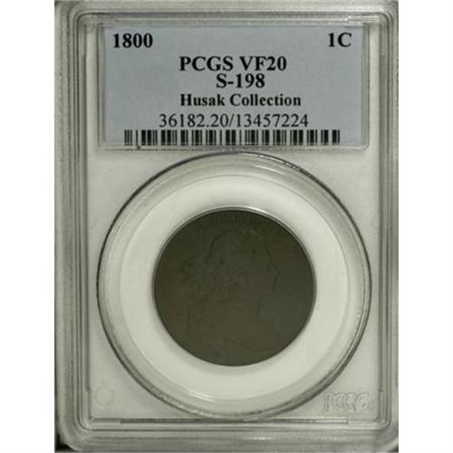 <B>1800 1C Normal Date. VF20 PCGS. S-198, B-19, High R.5.</B></I> <B>Bland VG10; tied for CC-1. Noyes VG10; CC-1. Photo #27758. Our EAC Grade VG10.<BR><BR>Equivalents.</B></I> Proskey 9; Doughty 147; McGirk 4D; Clapp-Newcomb 11; EAC 13; <I>Encyclopedia </B></I>1737; PCGS #1449.<BR><B><BR>Appearances. </B></I>The obverse and reverse are illustrated in Noyes (1991).<BR><B><BR>Surfaces.</B></I> A lovely piece consisting of intermingled medium brown and lighter reddish-brown color. Cleaned and recolored, yet possessing excellent eye appeal. The obverse has a small nick in the hair, another through 80, and a tiny rim bruise at 4 o'clock. The reverse has a small depression at the left top of N in ONE, with other typical abrasions.<BR><BR><B>Variety. </B></I>Chips at right top of 1. Top of Y high. Vertical crack from 1 in denominator to left ribbon. The obverse appears on S-198. The reverse appears on S-198.<BR><BR><B>Die State III. </B></I>An intermediate die state. The early state crack along the left side of the 1 in the denominator appears to be constant. With fewer than 30 examples known in all grades, Breen recorded six distinctly different die states!<BR><BR><B>Census. </B></I>The finest known, this example is one of the most pleasing survivors from the die pair. Most known examples have dark or corroded surfaces.<BR><BR><B>Commentary. </B></I>In addition to its importance as a rare Sheldon number, the low condition census doubles its importance to collectors. Finest known for the variety grades below Fine, and only eight examples are known better than Good. The top six examples in Bland's Census have a combined point value of just 55.<BR><BR><B>Provenance. </B></I><I>Douglas Hughes (1986); Jack H. Robinson (Superior, 1/1989), lot 416; John R. Frankenfield (Superior, 2/2001), lot 459, $15,525.</B></I><BR><BR><B>Personality. </B></I>An early employee at the Mint was <B>Jacob Bay,</B></I> who was hired to cut punches on December 24, 1792, and signed the Mint Rules and Regulations on January 1, 1793. Article 5 states that "any workman who shall come to the Mint drunk or shall get drunk while there shall forfeit as in Article 2," which stipulated forfeiture of one day's pay for the first offense, two days' pay for the second offense, and all money due plus discharge for the third offense. Bay was discharged under those terms in August 1793.<BR><BR><b>Shipping:</b> Coins & Currency (<a target="_blank" href="http://www.heritageauctions.com/common/shipping.php">view shipping information</a>)