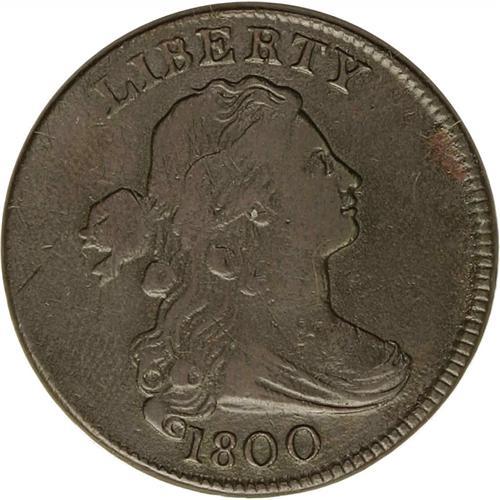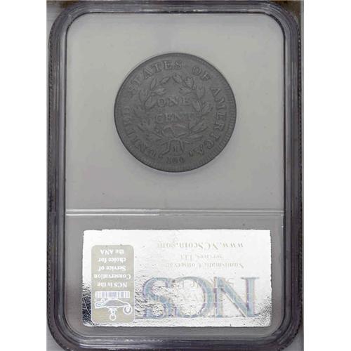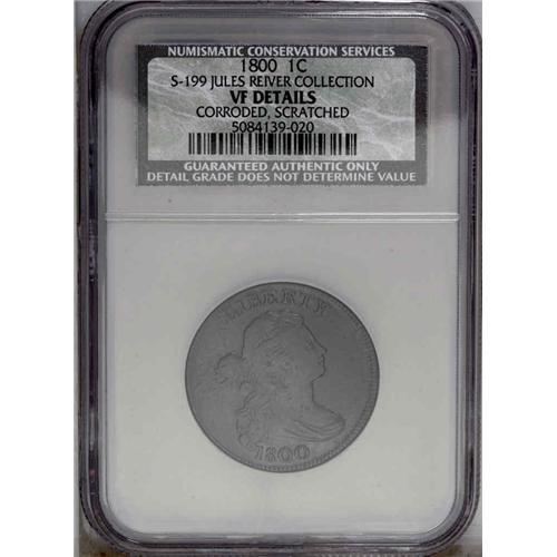 <B>1800<1C> S-199, B-14, High R.3--Corroded, Scratched--NCS. VF Details. VG10 EAC.</B></I> An early die state with a faint die crack from ED to the rim, but no other visible die defects other than a few light clash marks. The surfaces are deep steel-blue with considerable reddish patina on the reverse. Both sides have light to moderate porosity distributed across the surfaces, and some old scratches on the obverse blend in with the surrounding surface. While certainly visible, these scratches are not obvious. This is the first use of Breen's obverse 9 (also Sheldon's obverse 9), which has thin bottoms to the 00 in the date. This feature is especially visible at the bottom of the second 0. This obverse die saw extensive use, through many stages of die cracks, and was combined with five different reverse dies to create as many varieties.<BR><I>Ex: Budd (10/11/1970).</B></I> Envelope Included.