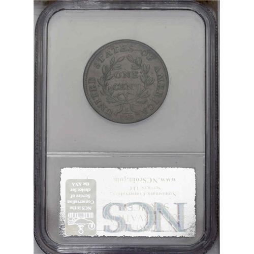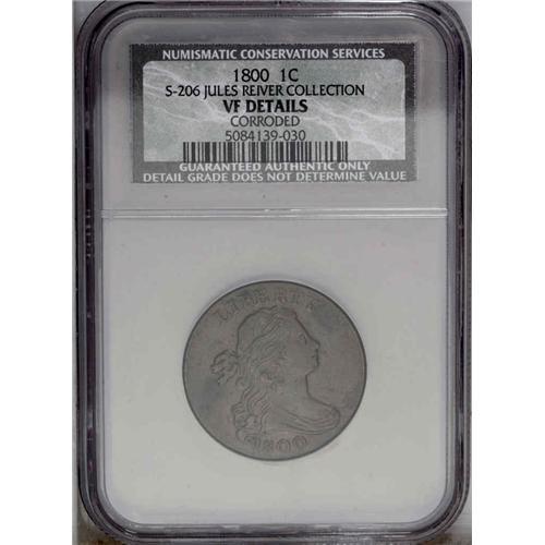 <B>1800<1C> S-206, B-27, High R.3--Corroded--NCS. VF Details. Fine 15 EAC.</B></I> Housed in an NCS holder incorrectly labeled 1800 S-203. This is a late die state, but not the terminal die state, as there is no evidence of the small rim break that eventually appears below the fraction. Medium olive with splashes of darker brown color and minor abrasions as expected.<BR><I>Ex: George Ramont (3/21/1972).</B></I> Envelope Included.