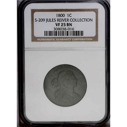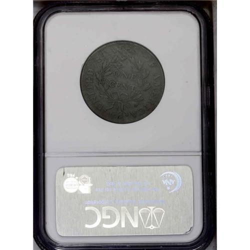 <B>1800<1C> S-209, B-23, R.3. VF25 NGC. VF20 EAC.</B></I> Although not a Condition Census example, this is certainly an attractive representative of the variety. Dark olive and steel-brown color is intermingled on both sides. The reverse has microscopic porosity, and a scratch at the top of the leaf pair over NE. An early die state with few obvious clash marks, and a light die crack through RICA.<BR><I>Ex: Henry C. Hines; Willard C. Blaisdell (2/8/1971).</B></I> Envelope Included.