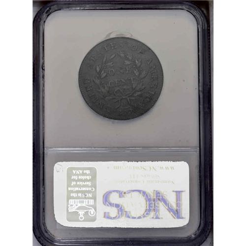 <B>1800<1C> S-211, B-13, Low R.3--Corroded--NCS. VF Details. VG7 EAC.</B></I> Moderately corroded surfaces with intermingled dark steel-brown and lighter tan color, the lighter brown mostly on the devices. This is an earlier die state with slivers or die chips between L and Liberty's head, and with bulges in the obverse field, but prior to the development of any cracks on either side. Despite having the next to last Sheldon number among the 1800 large cents, current emission studies suggest that this was one of the first varieties struck after the overdates.<BR><I>Ex: Dill (10/18/1969).</B></I> Envelope Included.