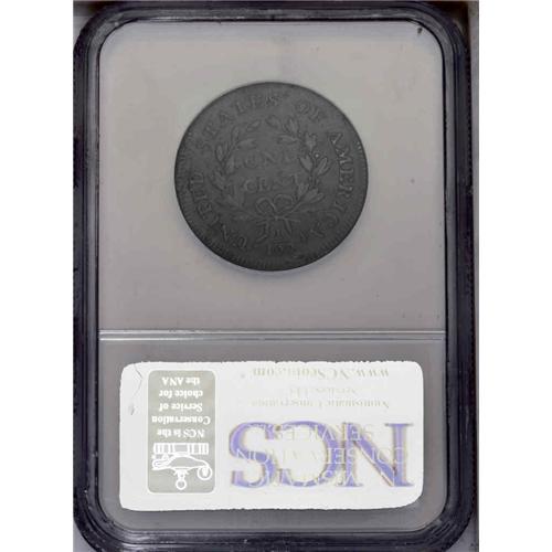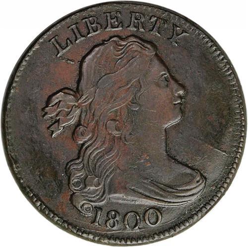 <B>1800<1C> S-211, B-13, Low R.3--Environmental Damage--NCS. XF Details. Fine 12 EAC.</B></I> In addition to the regional corrosion still visible on both sides, the surfaces have been lightly burnished. It is still a pleasing example with deep steel and lighter tan color, and considerable red patina. This example appears to be the final die state recorded by Breen with severe obverse cracks and bulges, and a short, jagged crack between E and S of STATES.<BR><I>Ex: George Ramont (11/7/1970).</B></I> Envelope Included.