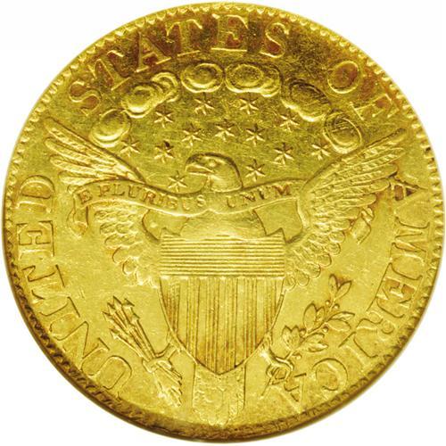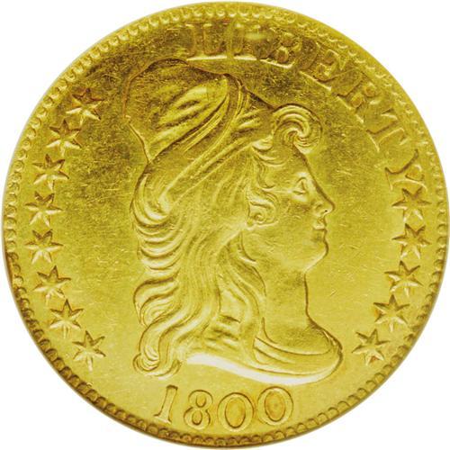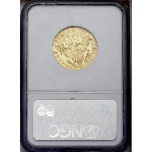 <B>1800<$5> AU58 NGC.</B></I> Breen-6438, B. 1-B, Miller-42, R.3. In 1800, five different half eagle varieties were coined, four of them with a Blunt 1 in the date, and the fifth (a major rarity) with a Pointed 1 in the date. This example is from one of the common Blunt 1 dies, and it is an attractive example. While the surfaces are lightly abraded, the fields are prooflike, and the overall eye appeal is excellent. Lovely light yellow-gold surfaces have greenish tendencies. <BR><BR><B>Important notice:</B> Heritage usually auctions material at the rate of 200-250 lots per hour. On some occasions eBay Live bid software or the Internet may not be able to keep up with the pace of the auction. We recommend placing a realistic absentee bid now as insurance to avoid disappointment. Occasionally the auctioneer may eliminate or reject an eBay Live bid, and the auctioneer may also reopen a lot after the close of the eBay live bidding (usually because we missed an audience bid), and may reject your bid even if it shows you as the winning bidder. By bidding via eBay Live, you agree that Heritage may award the lot to another bidder at its sole discretion under the circumstances described above or any other reasonable circumstances. Since eBay bids are not shown to us until we open the lot on the floor, we treat those bids just like floor bids. In most cases the floor responds before the eBay bid is presented to us, due to Internet lag time, so for consistency we have made it a policy that floor bids are always considered first over tie eBay live bids. Also please note that all Heritage lots purchased through eBay Live carry a 20% Buyer's Premium. Please make sure you read the Terms and Conditions before you bid. This lot is being auctioned in conjunction with a live floor auction by Heritage Galleries & Auctioneers. All final auction and invoice information will be supplied by Heritage Galleries & Auctioneers, and all other information should be considered preliminary. Lot:2616 <BR><BR><B>Winning Notification and Billing:</B> After the FINAL session in this auction is complete, Heritage will send e-mail and snail mail invoices. This process normally takes several days. All final auction and invoice information will be supplied by Heritage Galleries & Auctioneers, and all other information should be considered preliminary. <BR><BR>This auction will be conducted on a live auction floor and over the Internet through eBay Live. If you choose to place an absentee bid, please take a moment to <font color='#0000ff'><u><a href='http://pages.ebay.com/liveauctions/help/before/laabsentee.html'>learn how eBay Live absentee bidding works</a></u></font><font color='#000000'>