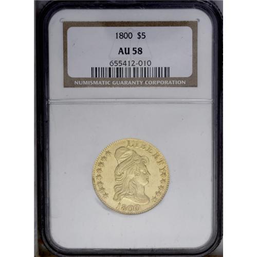 1800 $5 AU58 NGC. Breen-6438, B. 1-B, Miller-42, R.4.