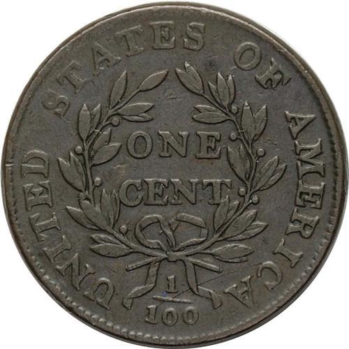 <B>1800/79<1C> S-192, B-6, Low R.3. XF40 NGC. VF20 EAC.</B></I> Although it is occasionally found perfect, this variety is usually recognized by the arcing die crack at the lower right of the reverse, through IC, the right ribbon, fraction bar, and 1 of the denominator. On this intermediate die state, a secondary crack branches from the first and joins the tail of the adjacent R. Lightly abraded surfaces as usual. Dark olive surfaces are a trifle dull, and traces of orange color remain visible under close scrutiny.<BR><I>Ex: George Ramont.</B></I> Envelope Included.