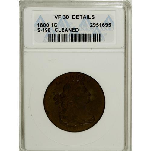 <B>1800/79 1C --Cleaned--ANACS.VF30 Details.</B></I> S-196. NGC Census: (11/37). PCGS Population (6/16). Mintage: 2,822,175. Numismedia Wsl. Price for NGC/PCGS coin in VF30: $1,075. (#1455)<BR><BR><b>Shipping:</b> Coins & Currency (<a target="_blank" href="http://www.heritageauctions.com/common/shipping.php">view shipping information</a>)