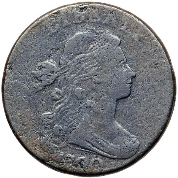 1800/79 S-195 R5 Overdate 80 over 79 with Style II Hair G4. Sharpness VG10 but covered with light to moderate corrosion, strongest on the reverse. No notable marks or verdigris but far from attractive. Slightly glossy dark steel and olive. The date is easily readable although it is affected by the roughness.
