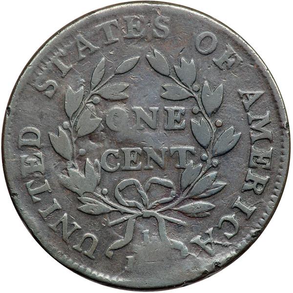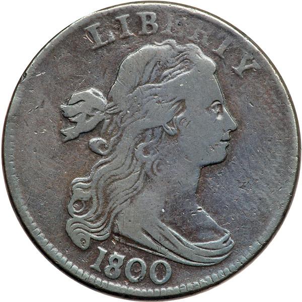 1800/798 S-191 R3 Overdate 800 over 798, Style I Hair. VG-10. Glossy chocolate brown with steel toning on the highpoints. Smooth and attractive, void of any hint of corrosion or verdigris. The only marks are a few small rim nicks on the reverse, including a pair of tiny ones at the second A in AMERICA. M-LDS, Breen state VI. Obvious swelling has obliterated most of the fraction. The date and legends are clear and the overdate is obvious on all 3 digits. A nice lower grade example of the variety.