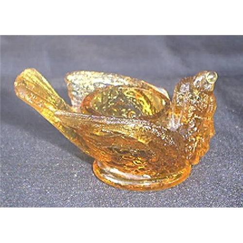 The Bird with Cherry salt cellar is pictured in Victorian Glass Novelties, Page 104 for $90-95.00 in amber color. It is 3" long and about 1 1/2" tall. These are not easy to find in any condition. This one is in excellent condition with No chips or cracks.