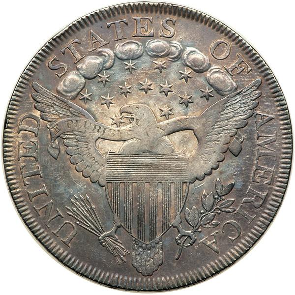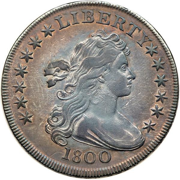 1800 B-3, BB-183 Normal Date Rarity 5. PCGS graded Genuine. Our grade is sharpness of XF. Subset of PCGS # 6887. Possibly dipped or cleaned decades ago and now has recovered to where it ranks as a very presentable example for the die variety collector as well as a general "donít confuse me with details" buyer. "This will look nice in my coin collection." It is for the latter buyer that we heartily recommend this turn-of-the-19th-century 1800-dated silver dollar. However the variety collector should take note that this is the finest BB-183 seen by Dr. Hesselgesser in his search over the past 6 years. Dr. Hesselgesser states; "I believe this coin is much rarer than is credited. Possibly R6?".