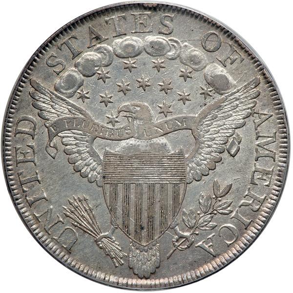 Reverse: Only 12 arrows. Point of star touches point of upper part of eagle's beak. Leaf point is under left side of stand of I in AMERICA. Center of A over cloud 3. Tip of arrowhead under right upright of U in UNITED. Reverse die used to strike 1800 BB-196 only (PCGS # 40079) .
