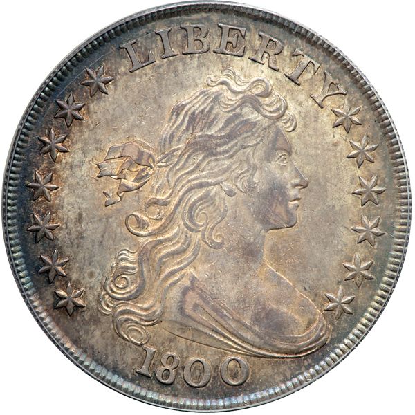 1800 B-19, BB-192 Close Date AMERICAI Rarity 2. PCGS graded MS-61. Subset of PCGS # 6892. In a new secure plus holder. A significant offering of what is surely one of the desirable Condition Census examples of the variety. Warm golden gray surfaces exhibit strong luster and a satin, almost matte-like quality that really engages the aesthetic sense with its serene beauty.