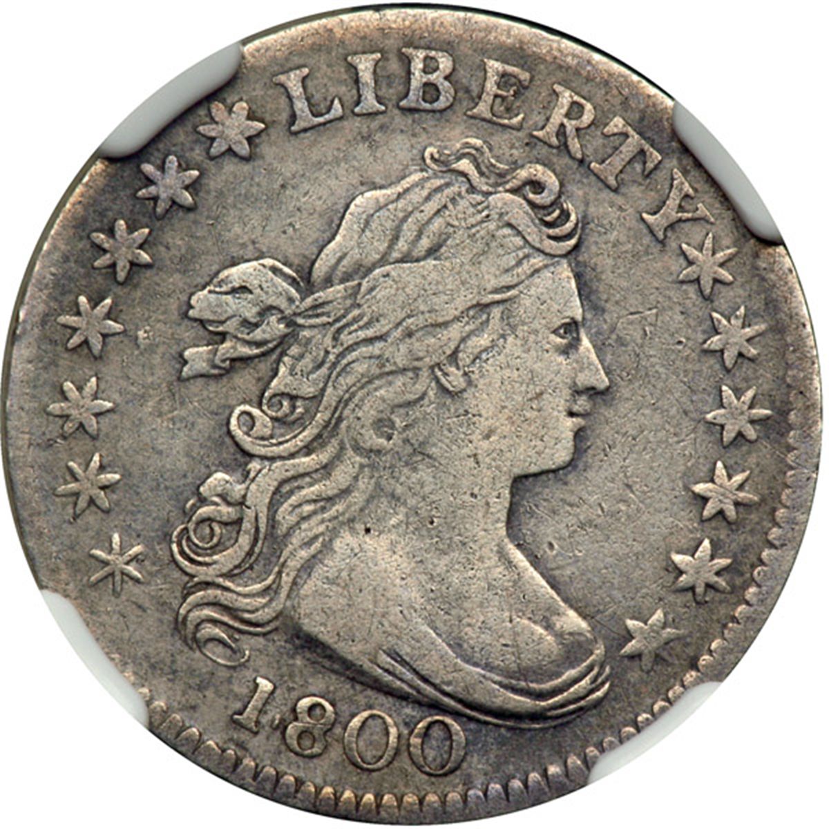 1800 Draped Bust Dime. . JR-2. NGC VF Details, improperly cleaned. A pleasing looking specimen and lightly toned. Only 21,760 minted.