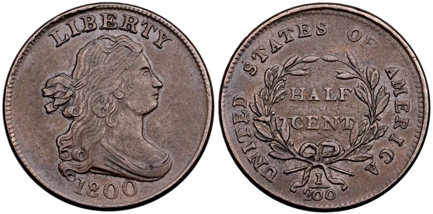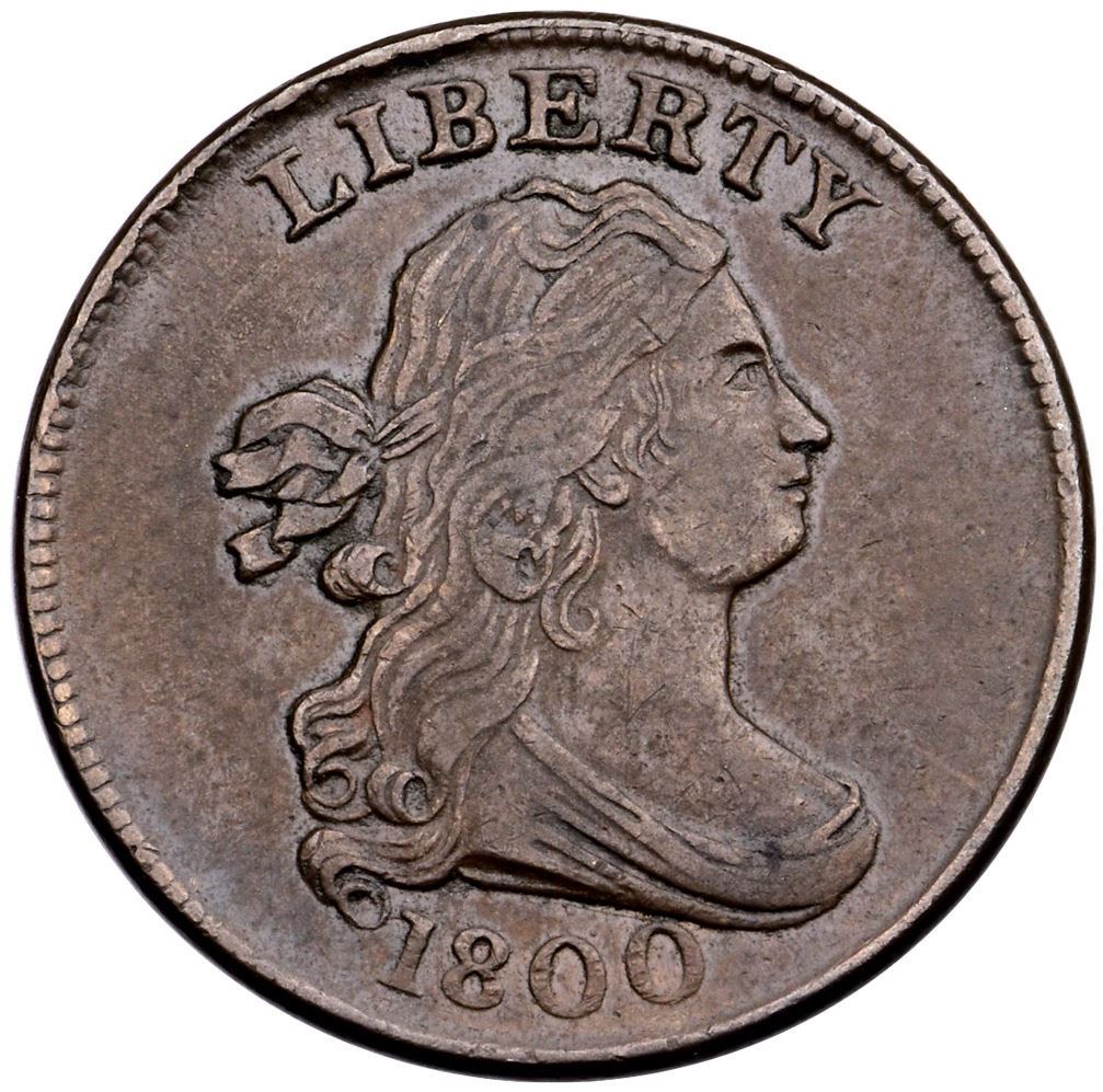 1800 C-1 R-2 VF35Attractive glossy chocolate brown and light steel with mint frost in the protected areas. Virtually flawless with excellent eye appeal. MDS, Manley state 3.0, with clear rim cuds over LIB.Certificate Number: Pedigree: Ex; CVM - Superior 9/7/2004:53 - Bob Kebler Collection