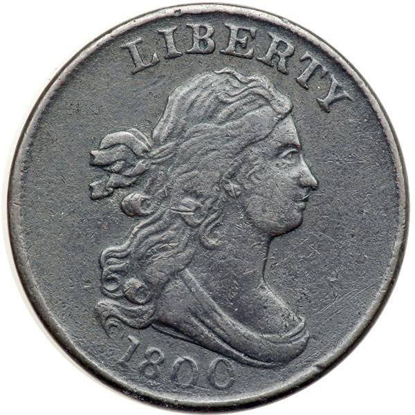 1800 C-1 R2 F15. Sharper by at least 5 points but there are a few small rim nicks at AT in STATES. The surfaces are decent but not perfectly smooth with traces of microscopic roughness on the left side of the obverse. Glossy dark chocolate and olive. M-LDS, Manley state 4.0. The curl left of the date is incomplete.