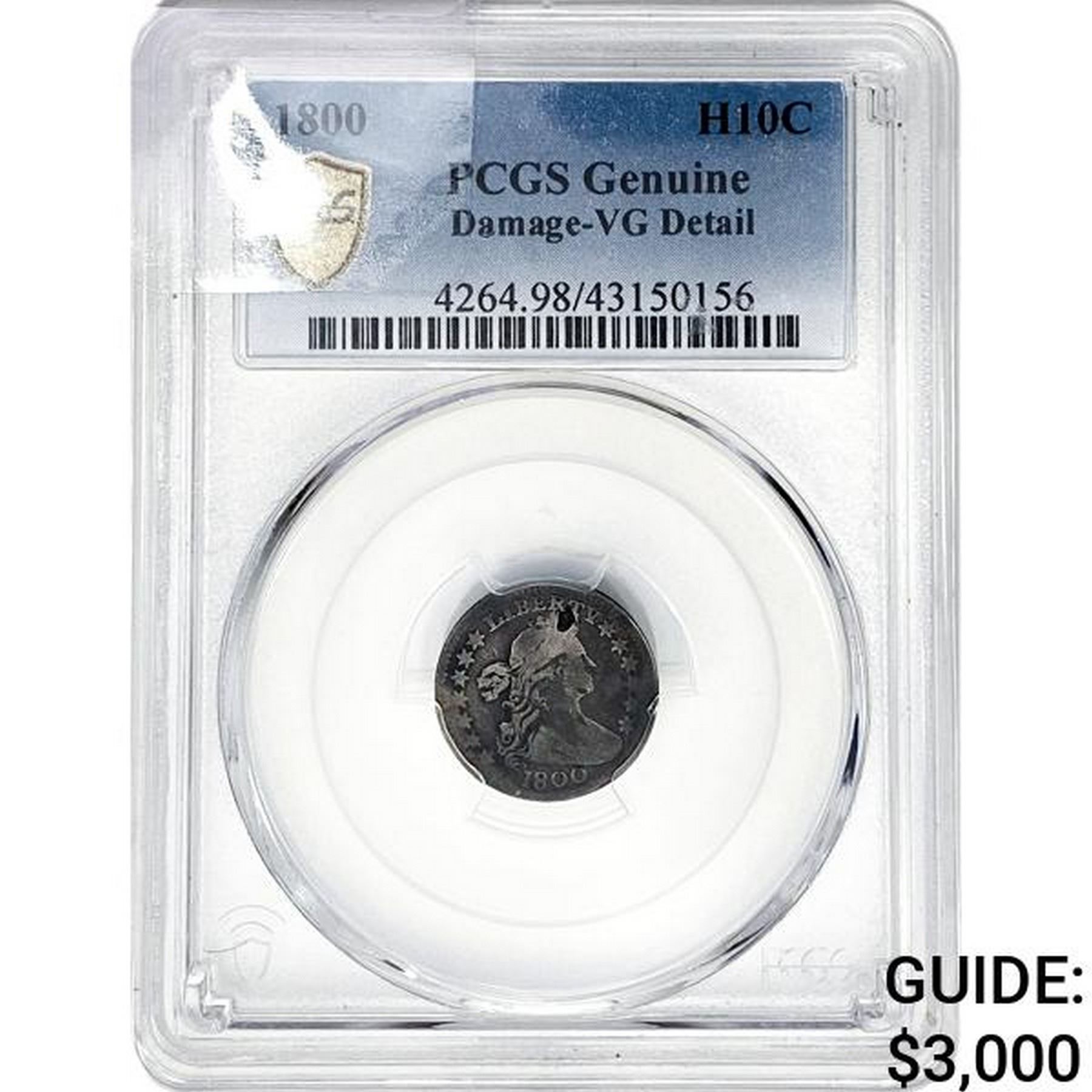 1800 Draped Bust Half Dime PCGS VG Detail Damaged