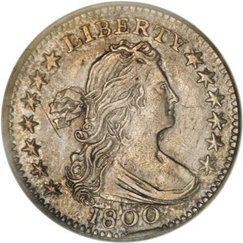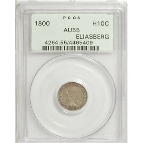 <B>1800 H10C AU55 PCGS.</B></I> V-1, LM-1, R.3. Ex: Eliasberg. The 8 in the date was produced from two small letter "0" punches; and a leaf is joined to the left diagonal of the last A in AMERICA. A large, mint-made die break occurs below 00 in the date. Die clashing appears near the date. This is a pleasingly original Choice AU example with attractive light coloration and a light pinscratch (or adjustment mark) just to the left of Liberty's hair ribbon. <BR><BR><B>Coin Engraver:</B> Robert Scot<BR><BR><b>Shipping:</b> Coins & Currency (<a target="_blank" href="http://www.heritageauctions.com/common/shipping.php">view shipping information</a>)