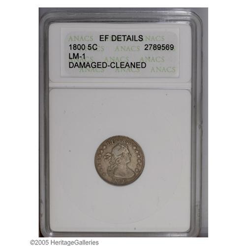 1800 H10C --Damaged, Cleaned--ANACS. XF Details. V-1, L 1800[H10C]--Damaged, Cleaned--ANACS. XF Deta
