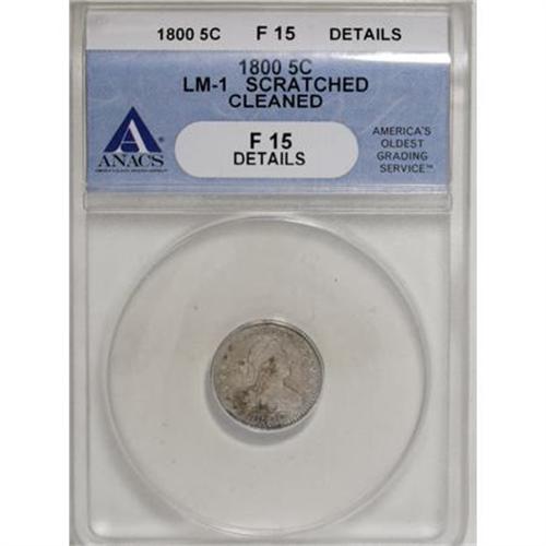 <B>1800 H10C --Scratched, Cleaned--ANACS. Fine 15 Details.</B></I> V-1, LM-1, R.3. Predominantly slate-gray, but the obverse has blushes of orange and jade-green. A pair of light parallel pinscratches are noted above the jaw, but abrasions are minor for the grade.<BR><I>From The John Stimson, Sr. Collection, Part Two.</B></I><BR><BR><B>Coin Engraver:</B> Robert Scot<BR><BR><b>Shipping:</b> Coins & Currency (<a target="_blank" href="http://www.heritageauctions.com/common/shipping.php">view shipping information</a>)
